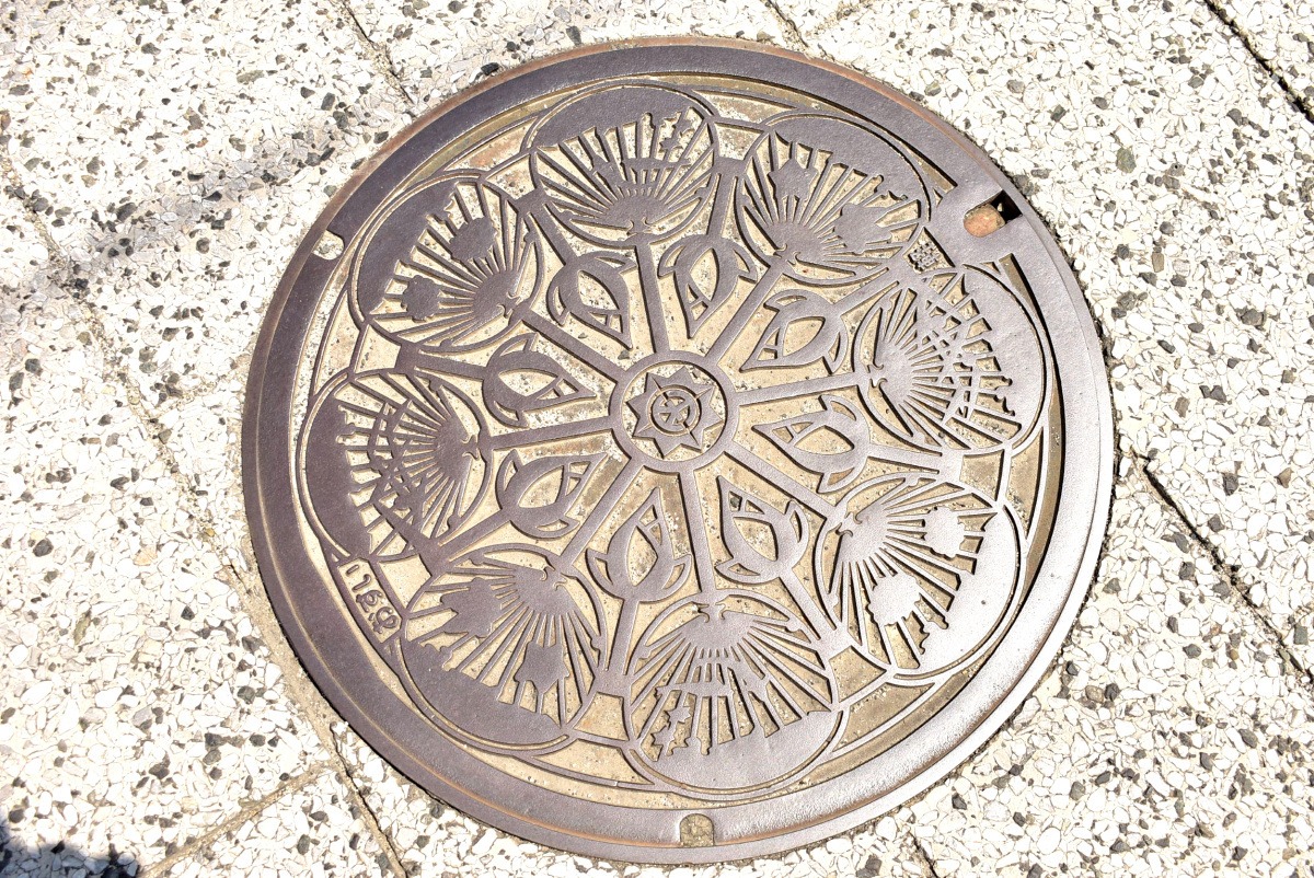 涼しげな透かし技法に、俳句を切り抜いた雲のもよう。武士の内職として始まったという、郷土の伝統工芸品・撫川うちわが、大賀ハスとともに1枚のマンホールになっています!花鳥風月、金魚にコイ。後世にのこしたい、職人技の極みのうちわ。手づくりならではの、やさしい風を感じられそうです。