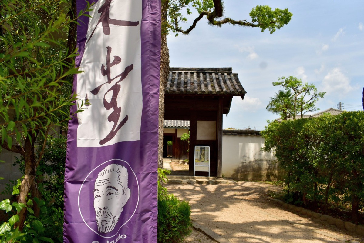 おっと忘れてはいけません。ほっこり発見旅の締めくくりに、旧庭瀬港からあと1kmほど足をのばしてみませんか?この大庄屋の邸宅で生まれ育った、ぼくどうさん(犬養毅)。ちょっと緩めな?イラストになって、旗めいておられます。小川をはさんで建つ記念館も生家も、どちらもまさかの入館無料。242号線沿いの駐車場から続く「木堂こみち」には、かわいいプレートも埋め込まれているので、楽しく巡れちゃいますよ。
