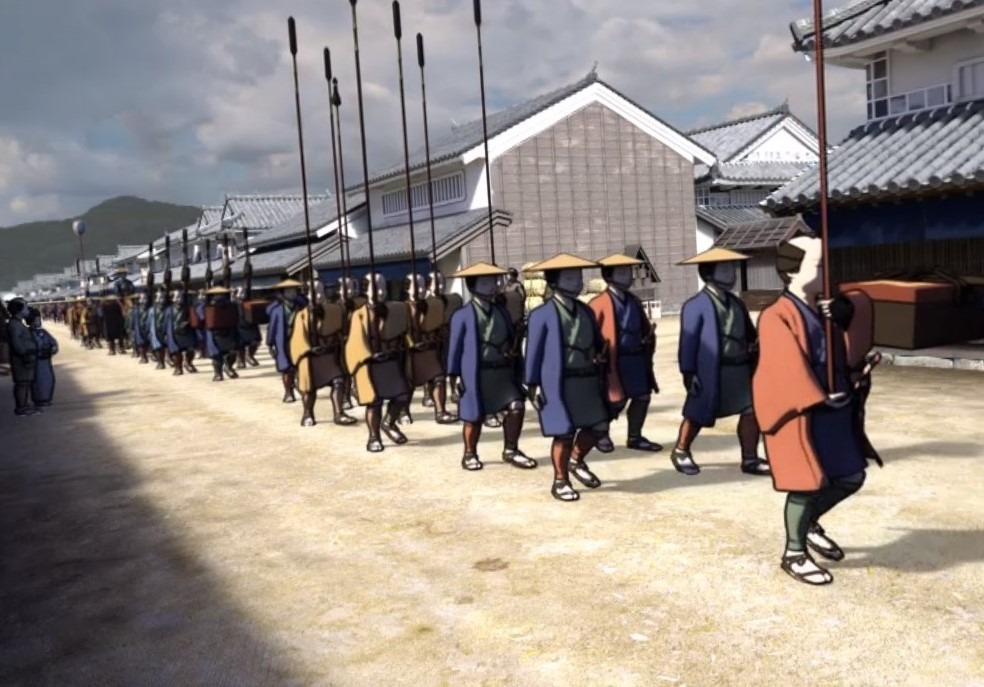 フル3DCG映像により江戸時代の矢掛の町並みが精密に再現されています。3Dでありながら人物は浮世絵風の表現で雰囲気たっぷり。宿場町ならではのイベント「大名行列」の様子も鑑賞できます。