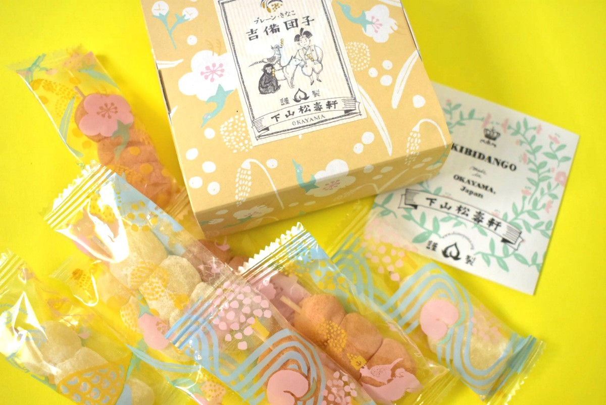 中でも、全部揃えたいほど可愛かったのがこちら!県産きなこのカワイイ小粒のきびだんご。串タイプ&個包装。トロっとモッチリ、脱力系。老舗菓子店の宝石箱のような一品です。清水白桃やマスカット・オブ・アレキサンドリアのフルーツ味もありますよ。