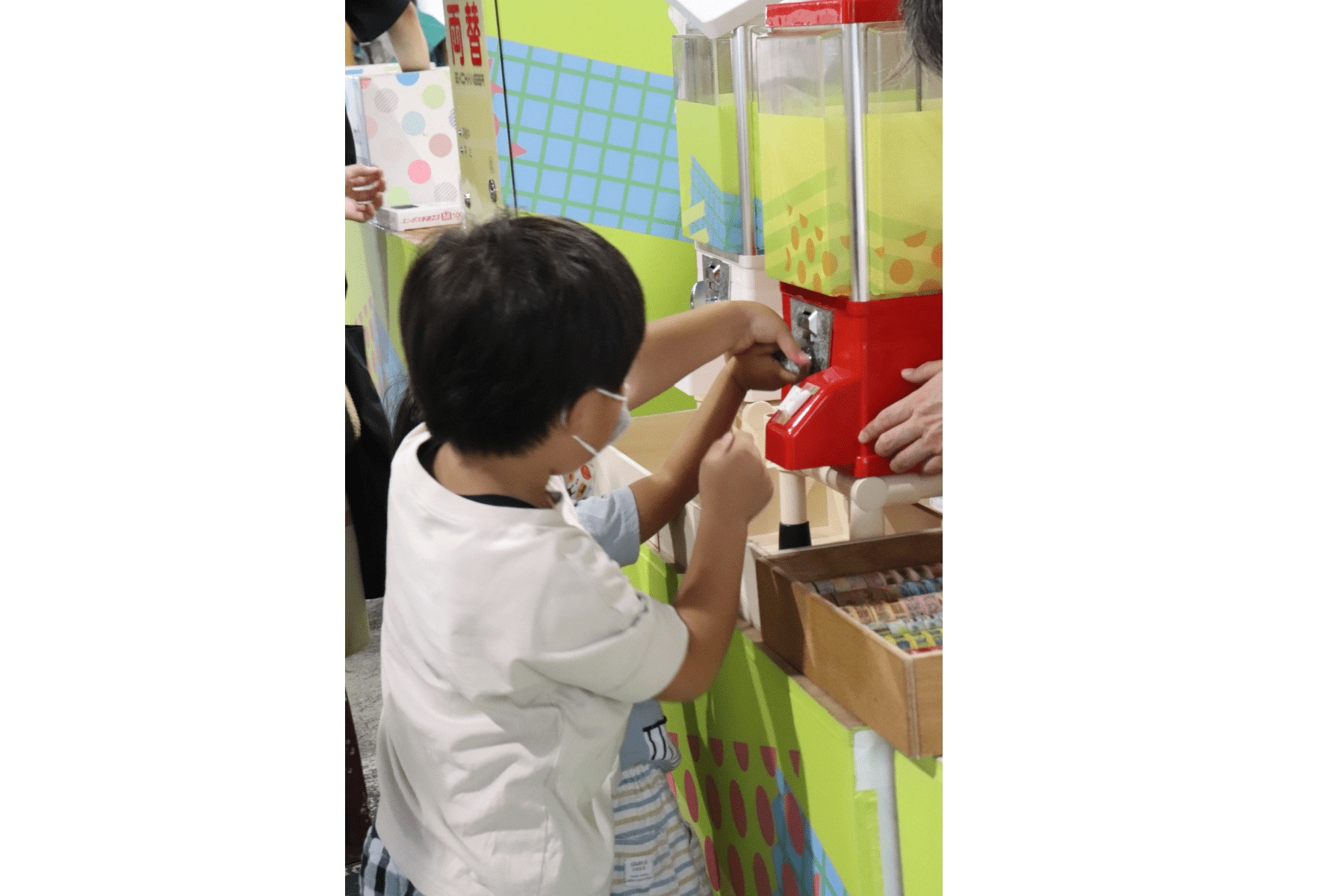 ひもくじ、ガチャガチャ、つかみ取りなど、幅広い年齢層で賑わっていました。ガチャガチャは、子供に人気で、目をキラキラさせながら回していました。「ガチャ」の音は、今も昔も変わらないワクワク感をよびます。