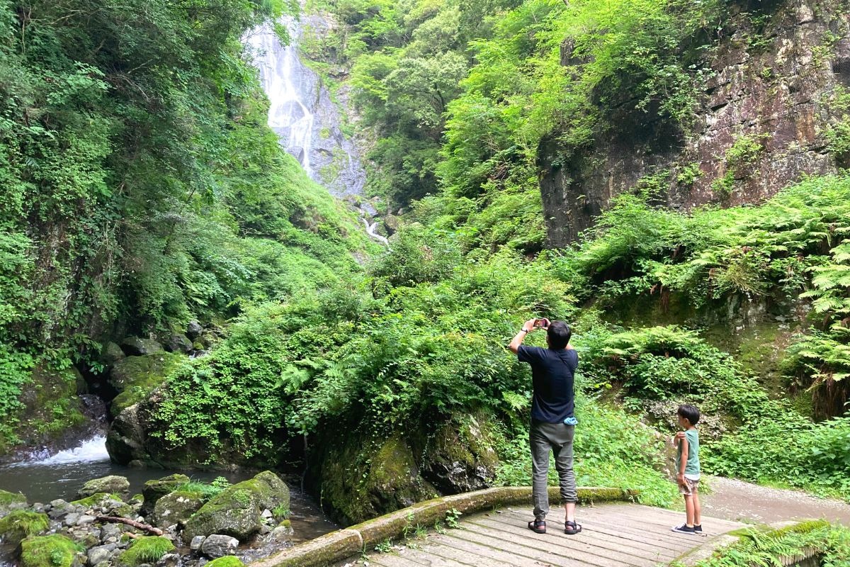 いろんな角度で、涼しみながら壮大で美しい滝を堪能できます。滝スポットは湿度が高いため、足元も不安な場合が多いですが、神庭の滝ではしっかり整備されており、小さな子どもでも歩きやすくなっていました。道中では200匹以上の野猿がお出迎えしてくれますよ。小さな木の橋が自然の風景になじんで、とってもフォトジェニックです。