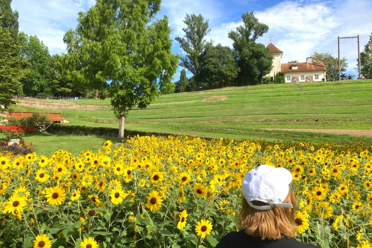 凛と咲き誇るひまわりと、ドイツの農村がイメージされた園内を背景に、異国情緒あふれる夏らしい1枚が撮れるでしょう♪