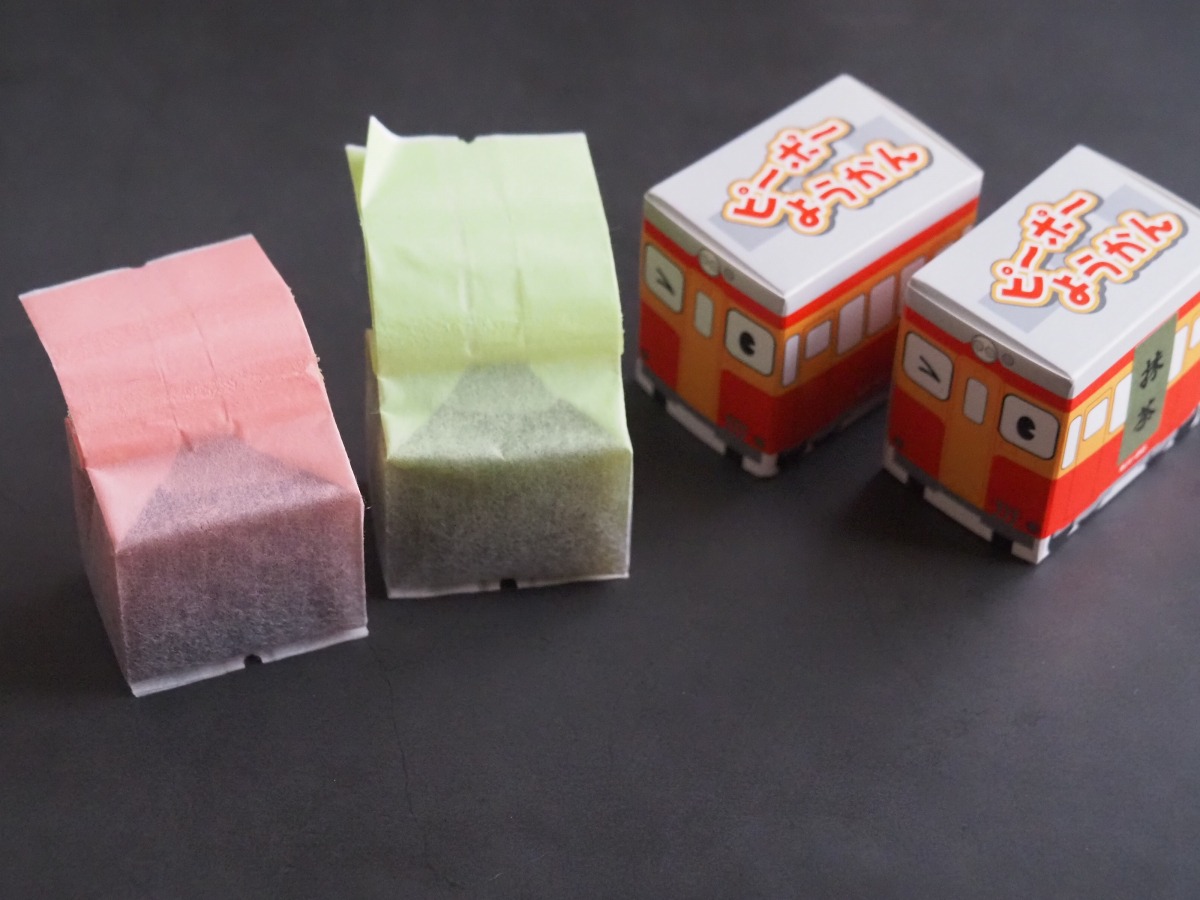 中からは昔懐かしの袋入りのようかんが登場しました。一口サイズでつるんと、ほど良い甘さ。抹茶ようかんは抹茶の香りがしっかりあり、美味しかったです。