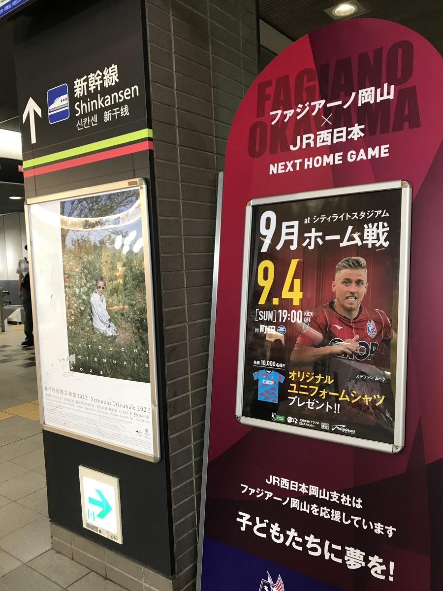 ファジアーノ岡山の出場試合がホームで開催される時には、岡山駅周辺が応援に行く人々でいっぱいになるほど人気のチームです。 JR西日本で岡山駅を通る電車の車内や岡山駅構内、県内各所にもファジアーノを応援する掲示がみられ、チームの次の試合予定が表示されたりと地域ぐるみで応援が活発です。