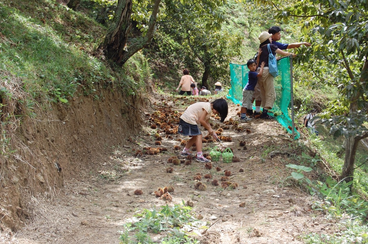 夏のマスカット狩りに続き、秋には栗拾いや柿狩り、芋掘りやしいたけ狩りなど、幅広い収穫体験ができます。また、杉林の中でのバーベキューやキャンプ、清流でのサワガニ取りも楽しめます。