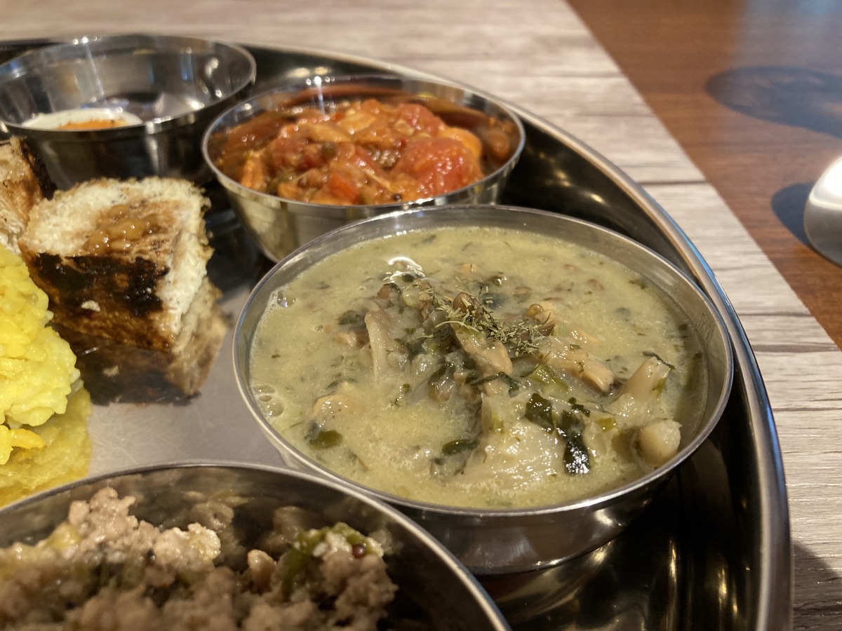 こちらのカレーは、味はもちろん美味しいのですが、なんといっても盛り付けに使われている素敵な器に目を奪われます。