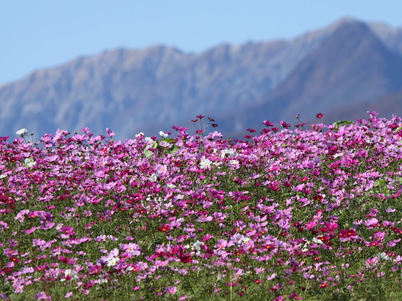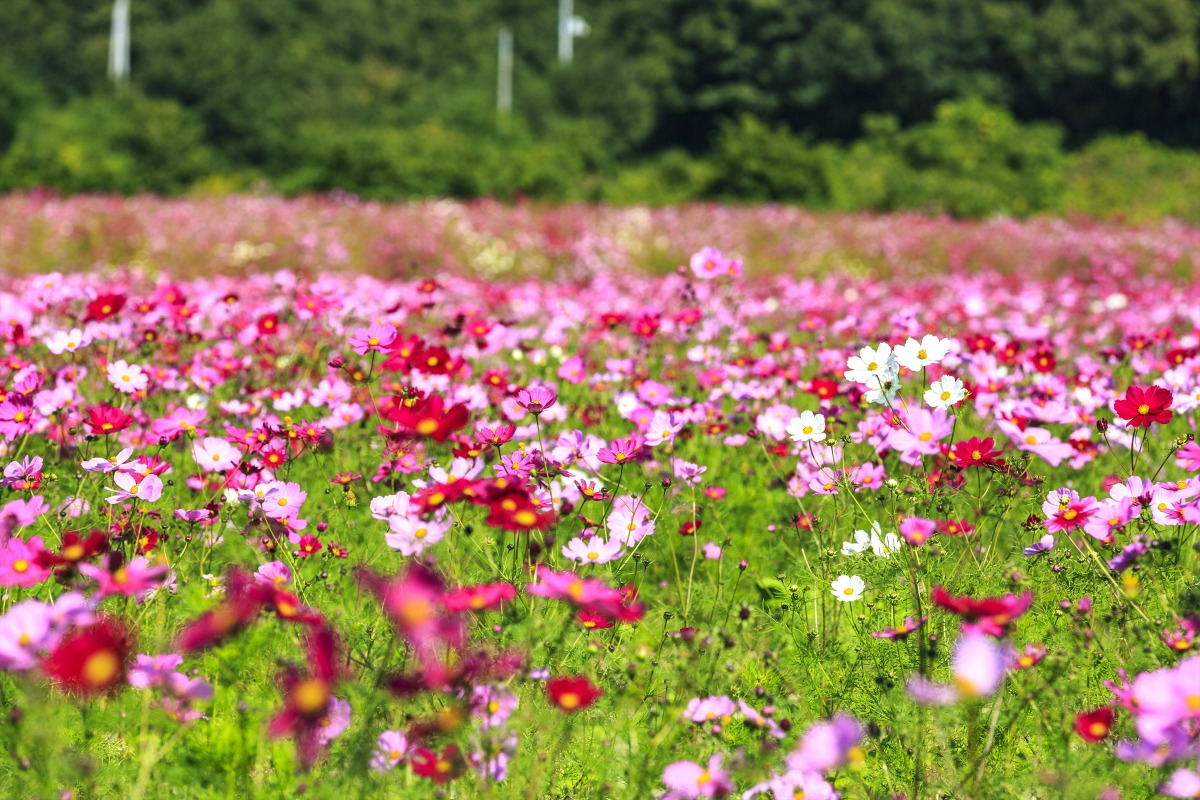 秋の花と聞いて思い浮かべるのは、やっぱりコスモス。赤やピンク、白など、たくさんのコスモスが大地を彩るスポットをご紹介。風に揺れる秋の花をぜひご堪能あれ。