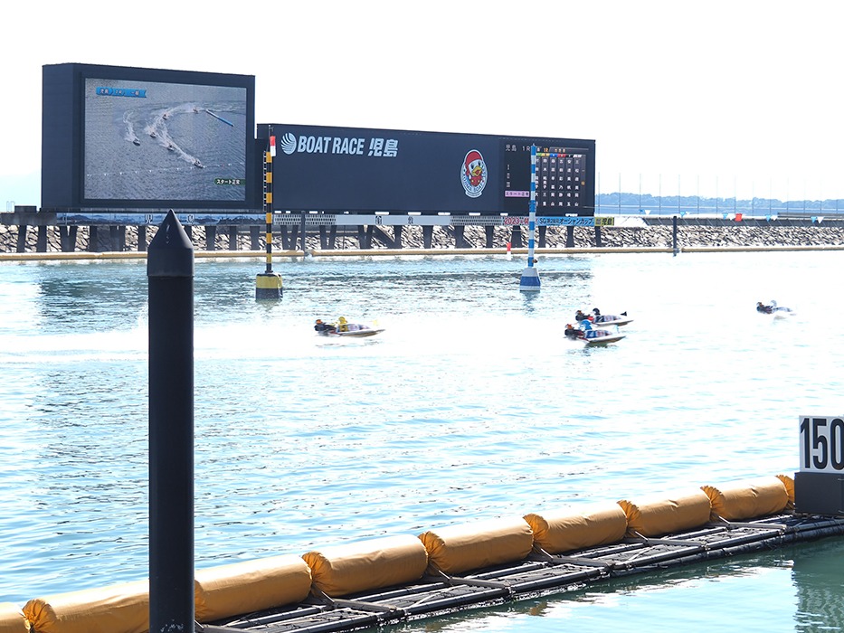 ボートレース児島は倉敷市児島元浜町にあり、瀬戸内海に面しています。そのため、1日の潮位差が大きいことが特徴。干潮時は水面が穏やかですが、満潮時は水面の感覚ががらりと変わり、選手はスピードを乗せにくくなるといわれています。