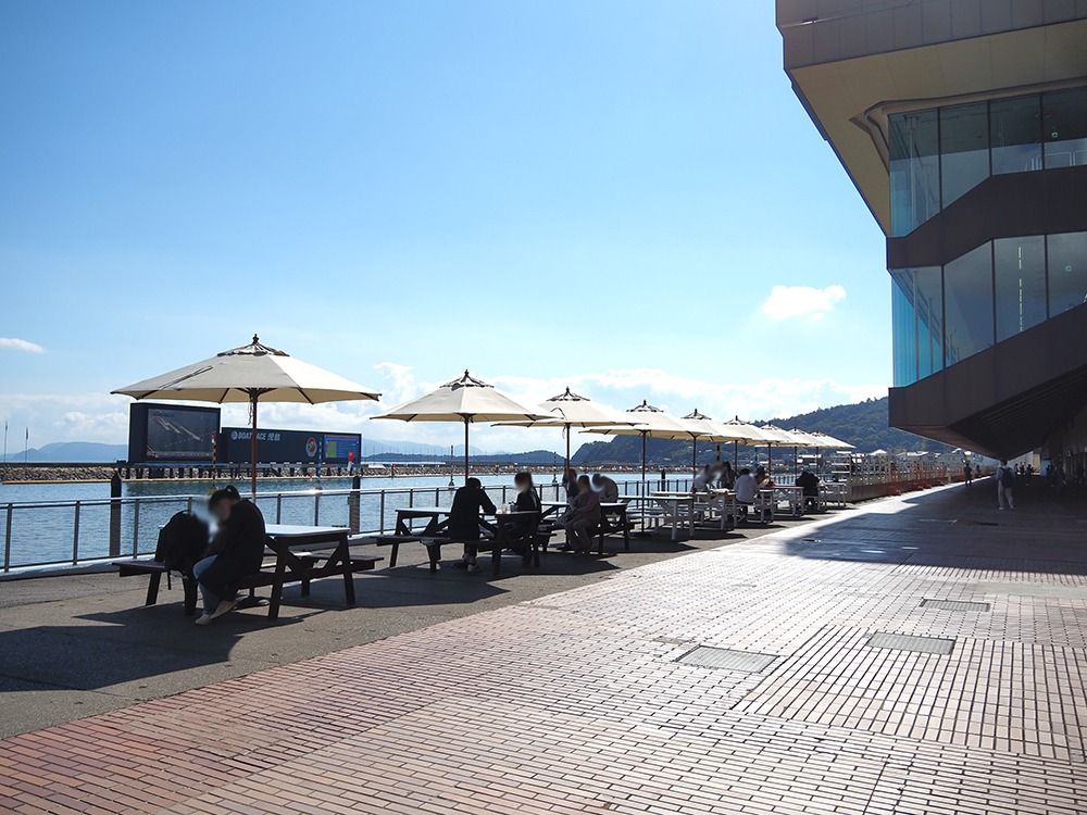 間近でレース観戦が楽しめるボートレース児島。展望が良く、休憩やグルメを楽しむだけでも気持ちよく過ごせそうです。
