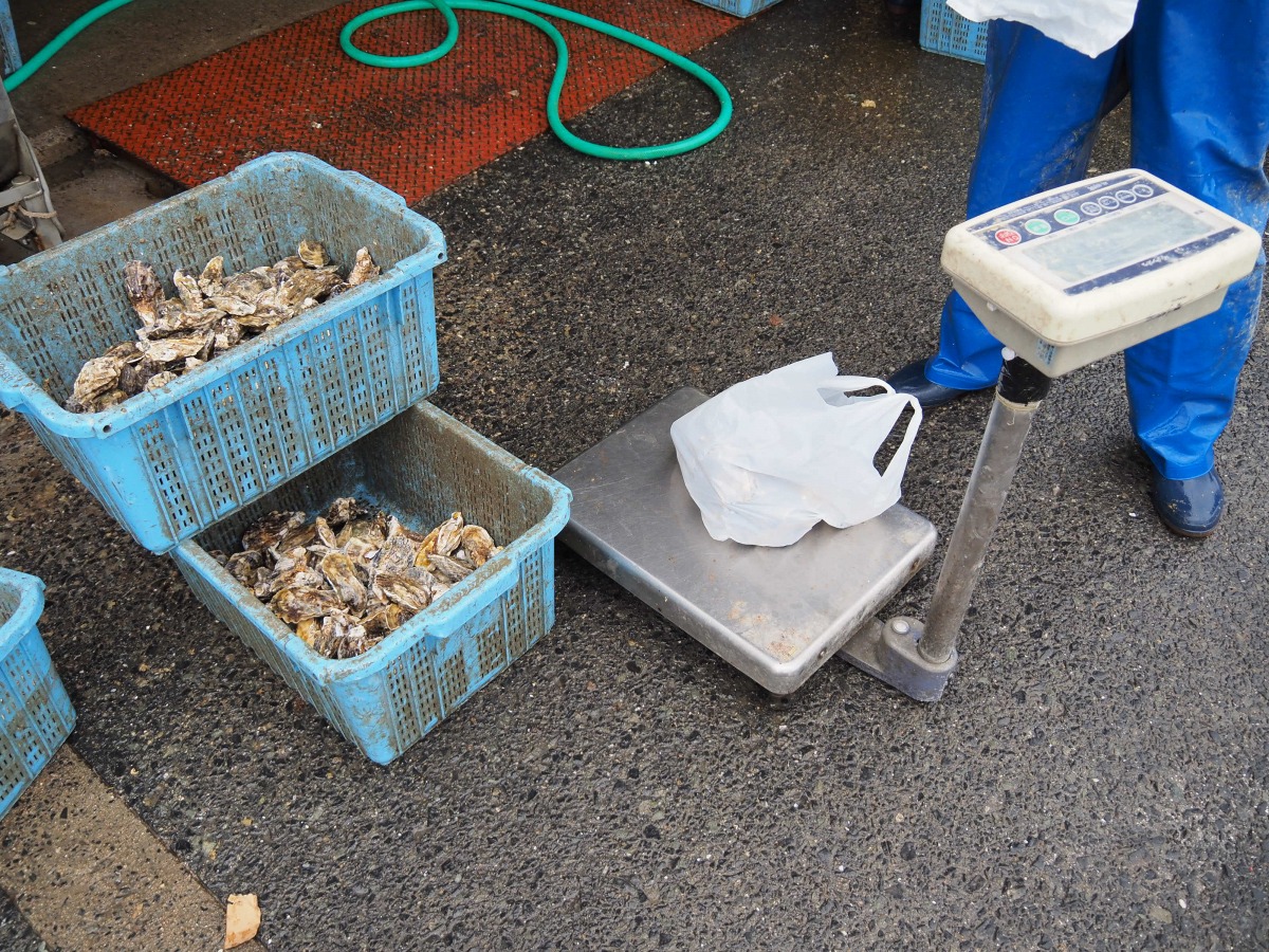 こちらでも11月末、牡蠣を購入しました。そのときは大きさを大小2種類から選ぶことができ、1kg小は600円、大は900円でした。