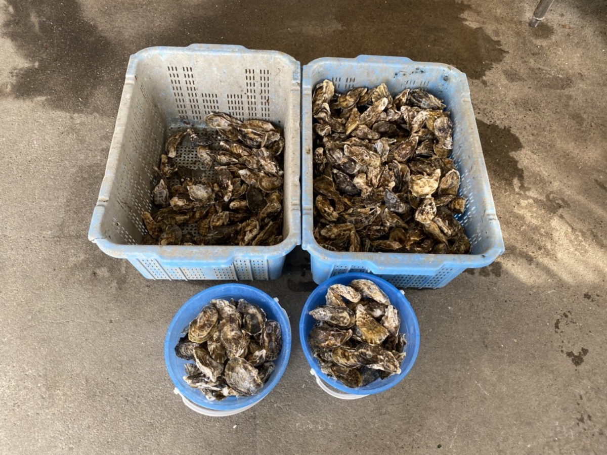 この日は店頭での殻つき牡蠣の販売は「マメ」という一番小さなサイズのみでしたが、日によってS~Lサイズそろう日もあるとのこと。水揚げ状況や選別の進捗によってさまざまなのだそうです。