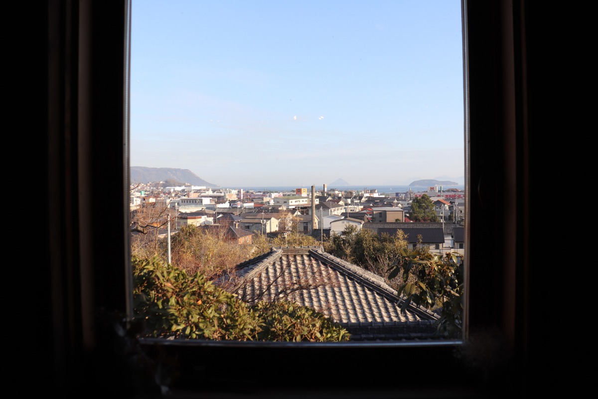 現在は、家がたくさん立ち並び、スーパーなどが見える沿岸部は、かつては塩田が広がる風景でした。塩業が栄え、オーナーさんの家も塩業をされていたそうです。