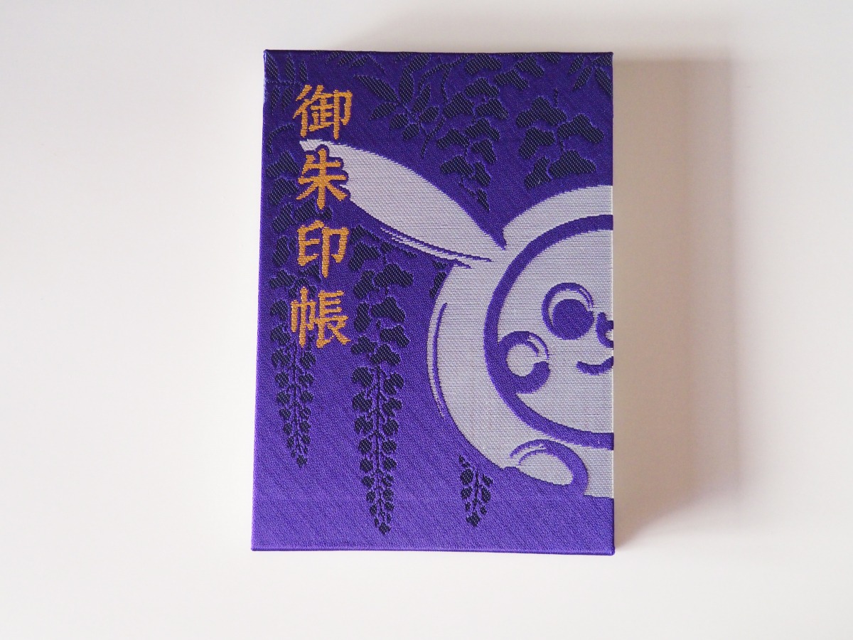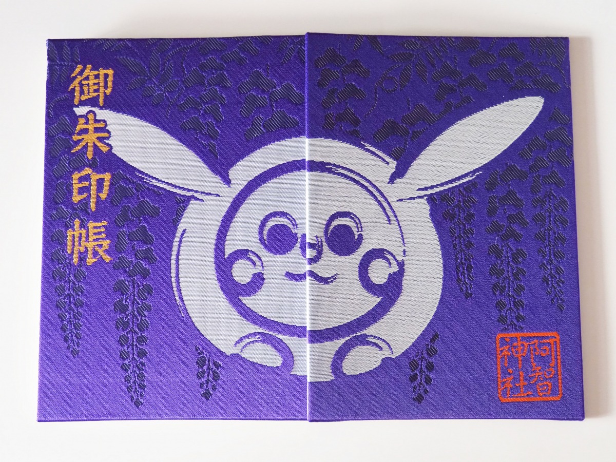 こちらは阿智神社限定のオリジナル御朱印帳。随身門のうさぎのイラストと、阿知の藤がデザインされています。