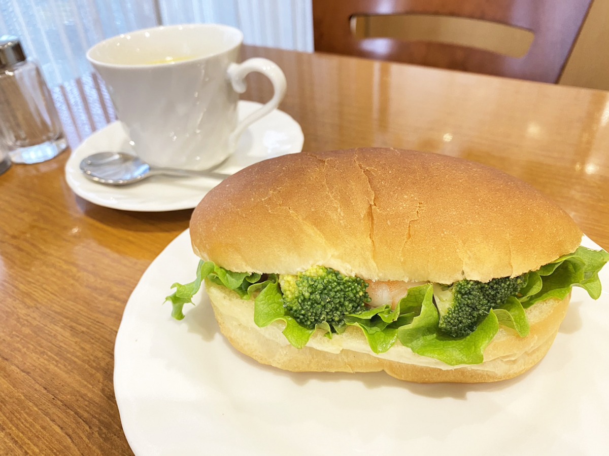 最後に、私がハマっている「キムラヤのパン」について紹介します。「ハラペコッペ(海老と玉子のスイートチリ)」は、コッペパンにプリプリのむき海老、ブロッコリー、ゆで玉子や野菜がサンドされたボリュームある総菜パン。スイートチリソースが食欲をそそります。ハラペコッペシリーズはほかにも味のバリエーションがありますよ。カフェスペースがある店舗でゆっくりと食べるのが好きです。