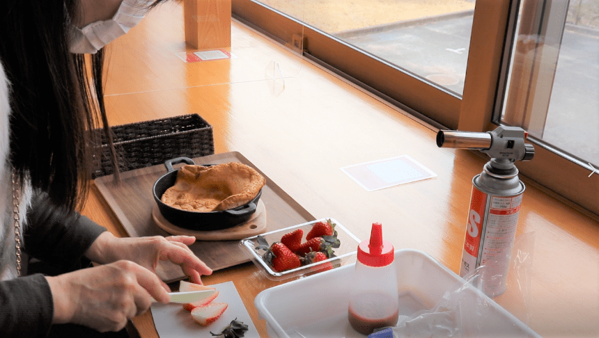 ダッチベイビー作り体験②(イチゴをデコレーション)