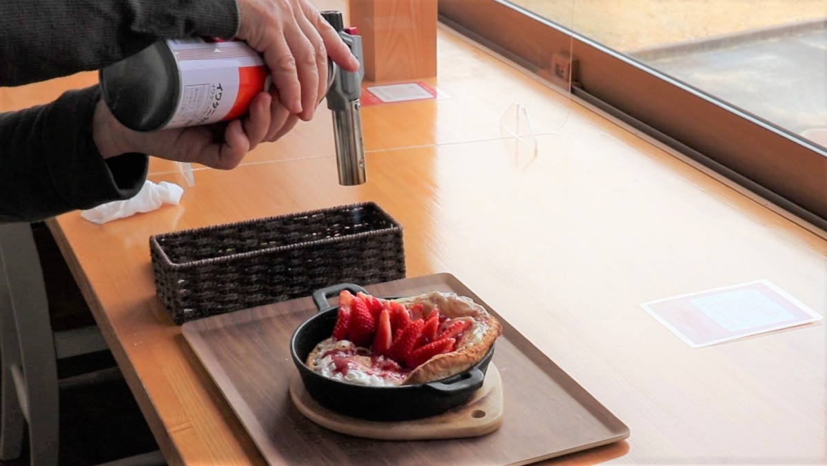ダッチベイビー作り体験④(バーナーでクリームブリュレ)