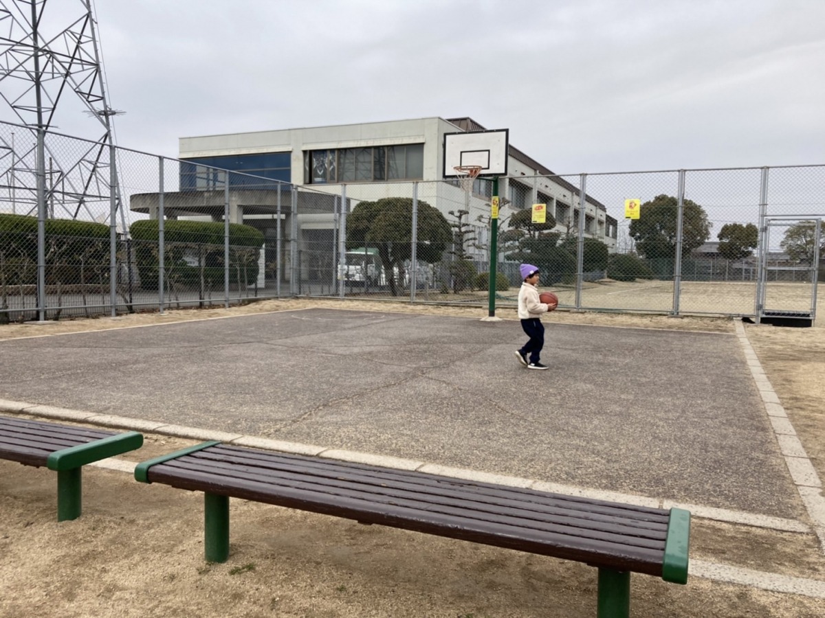 バスケットゴールがあるすぐそばには遊具のある公園あります。ベンチやテーブル、芝生広場もあるため、天気のいい日はお弁当を持ってきても楽しめそうです。