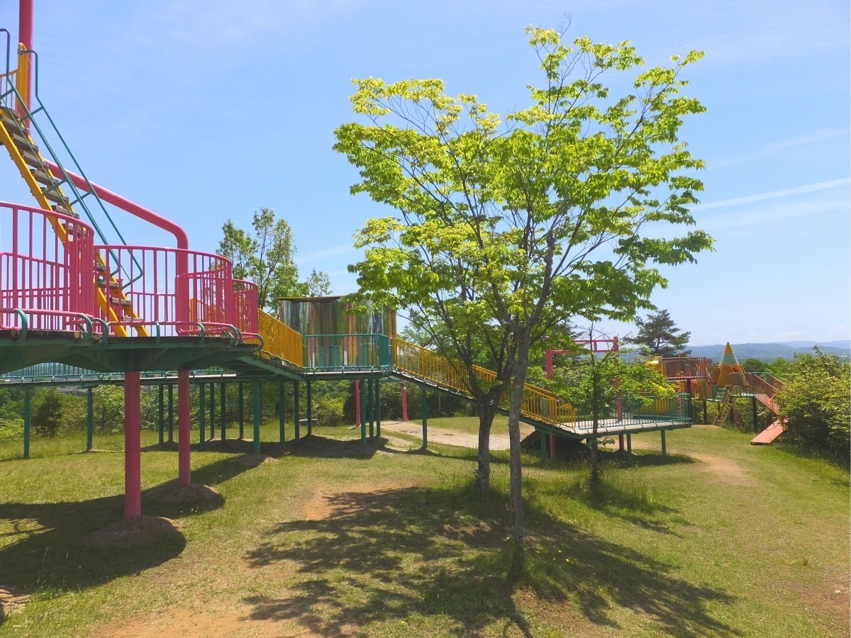 園内にはアスレチック遊具も備えられており、1日中体を動かして楽しめます。少し高台に位置するため、景色がいいのも魅力的ですね。