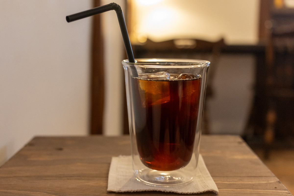取材日は暑い日だったので、「夜空の珈琲ブレンド(ICE)」をオーダー。メニューはドリンク以外にケーキも数種類(日によって異なる)用意されています。