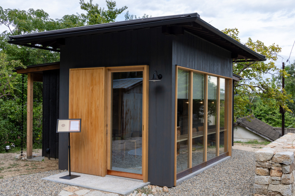お店の名前は「harel CAFE+」。かつて東屋の休憩所があった場所に佇む焼杉板の貼られた小屋は、さながら現代の茶店の雰囲気。先日、プレオープンがあったので立ち寄ってきました。