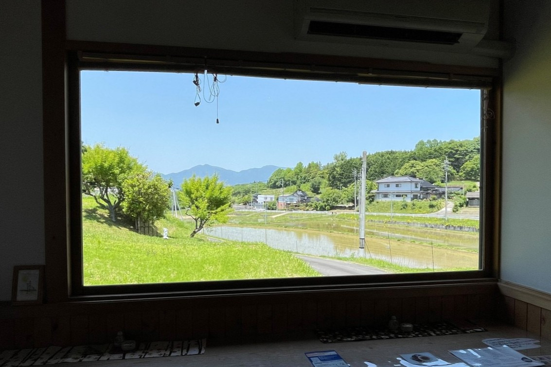 店からは北側に秀峰・那岐山が望めます。大きな窓に面したカウンター席に座れば、窓枠に切り取られた一幅の絵のように美しい景色を見ながら食事が楽しめます。