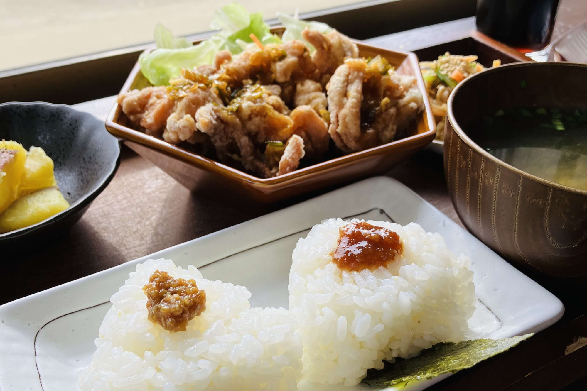 からあげやチキンカツなどの鶏料理と自家製うどんが人気の食事処。特に手作りのタルタルソースとごま油の風味が食欲をそそる「チキン南蛮定食」がおすすめです。定食にはごはんだけでなく、うどんも付いてきます。ボリューミーでリーズナブルなランチで、お腹いっぱいになること間違いなし。