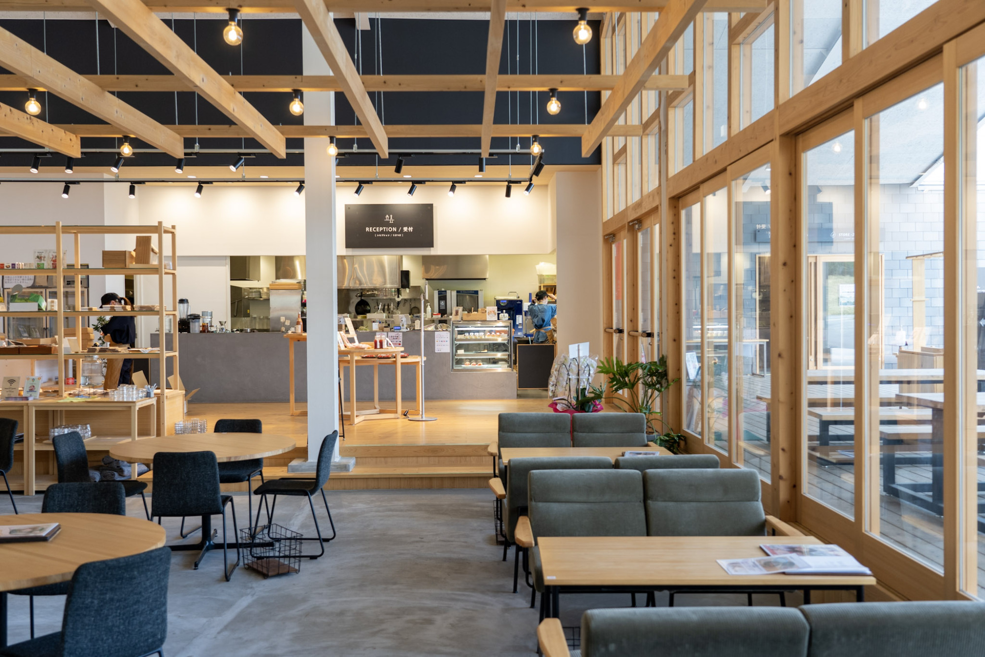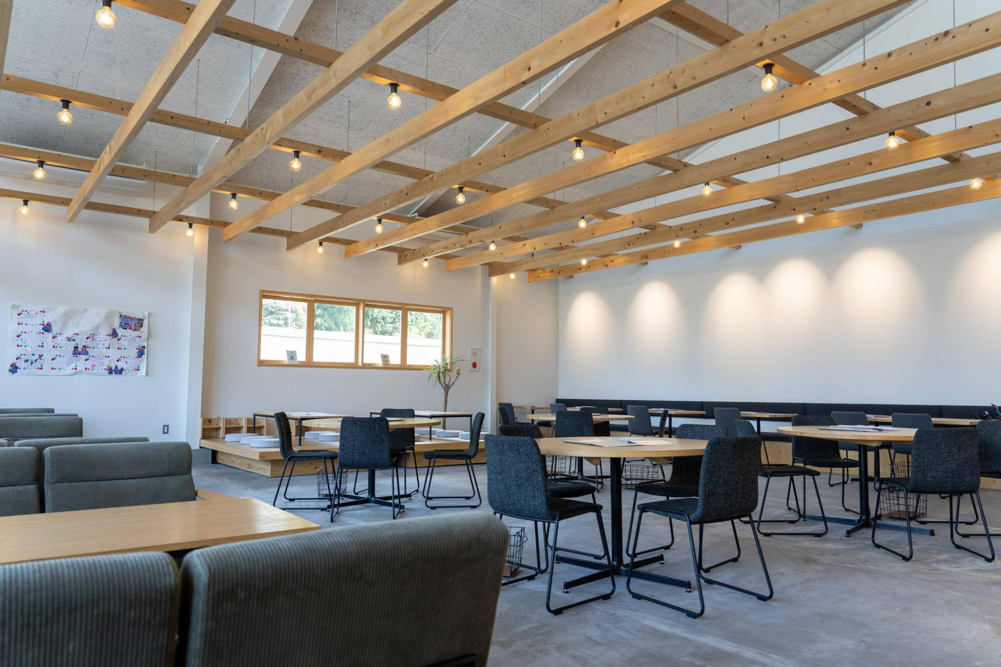 「BASE101% -NISHIAWAKURA-」は、国道373号線沿いにある木材工場の倉庫の一部をリノベーションした複合施設です。レストラン&カフェでは、西粟倉村ならではのメニューが楽しめます。