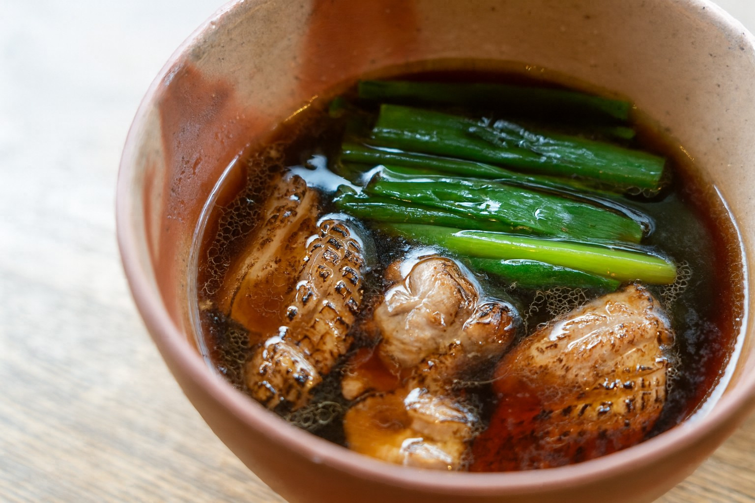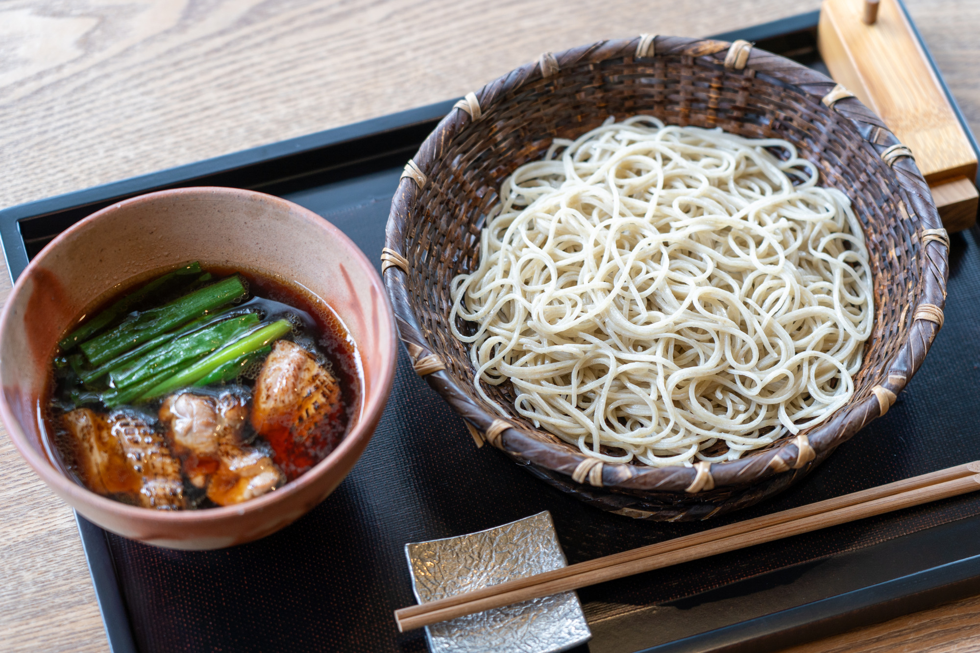 丁寧に下処理し、芳ばしく焼き目が付けられた鴨肉は、噛んだ瞬間そのジューシーさに驚かされます。匂いや食感にクセがあると言われる鴨の肉が、こんなにも柔らかく味わい深いとは!信州の大久保醸造の醤油を使った濃いめのかえしとの相性も抜群で、その旨みが麺に絡んで堪らない美味しさです。