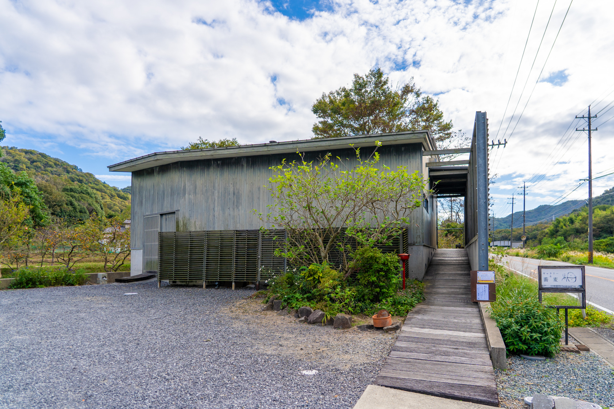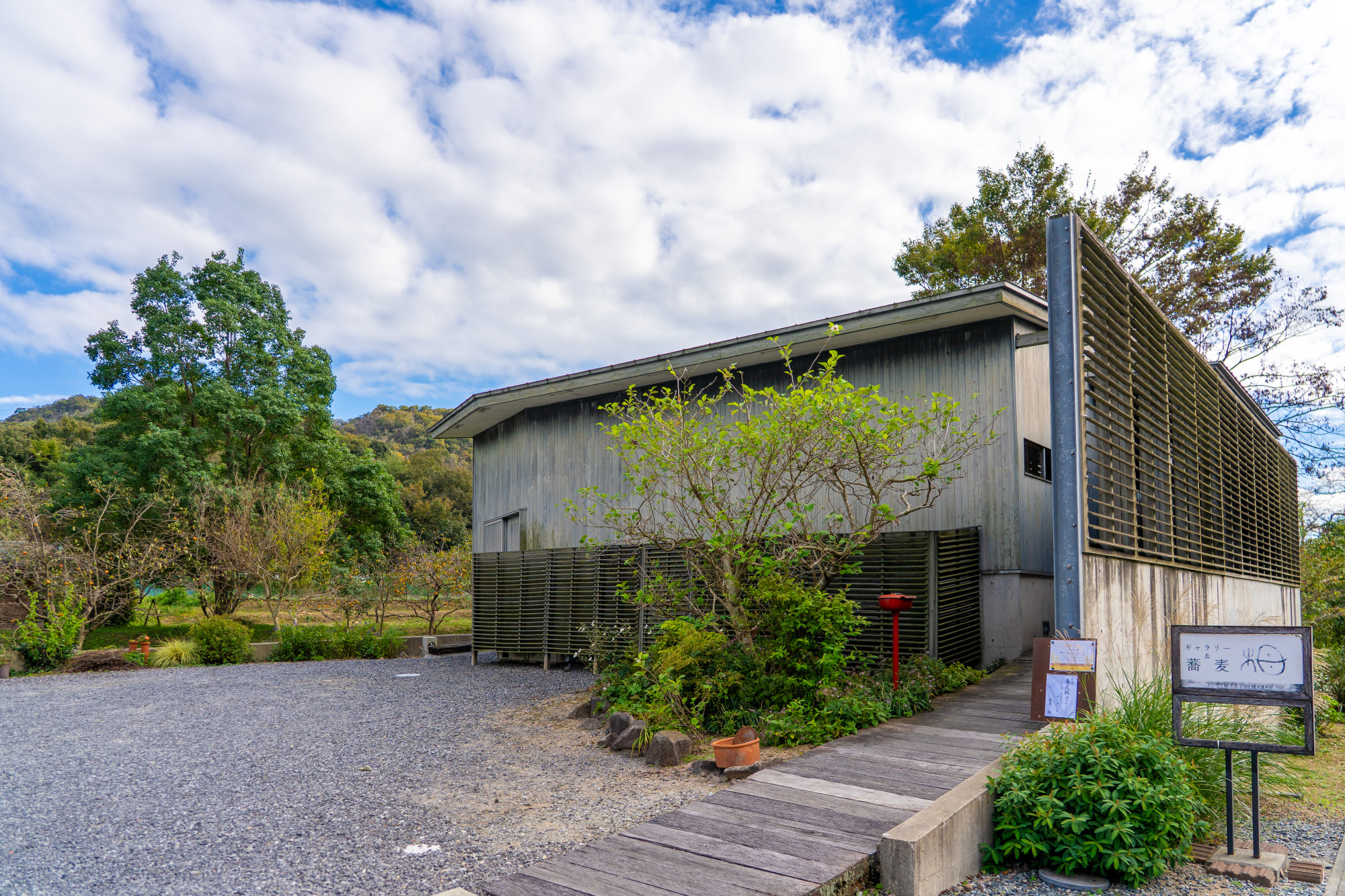 国道 374 号線沿いに建つシックな建物は、蕎麦屋とギャラリーが併設した異色店。細くコシのある蕎麦は国産のそば粉を使って毎日店内で手打ちされています。通年提供の「鴨ざる蕎麦」(1,900円)は、一度は食しておきたいこちらのいちおしメニュー。見た目からも分かるきりりと端正な蕎麦の姿に期待が高まります。「にしん蕎麦」や温かい「釜揚げ蕎麦」、季節のメニューもあり、作家ものの器で供されるのも魅力です。