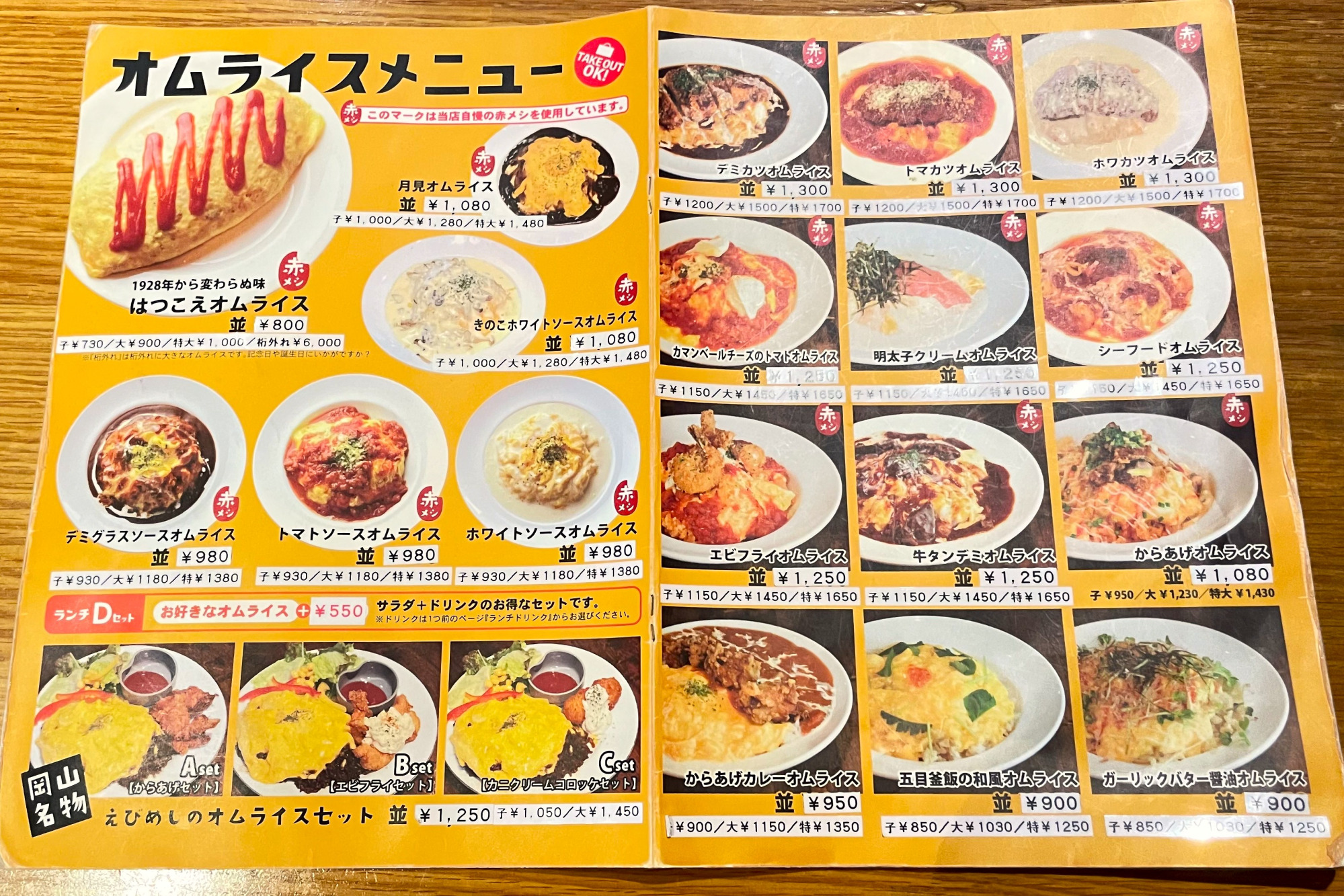 昼はオムライス専門店、夜は居酒屋として営業するJR和気駅近くの店。「はつこえオムライス」(並800円)は、通称”赤メシ“(ケチャップライス)を薄焼き卵で包んだ昔ながらのスタイルで、1928年の創業時から100年近く愛され続けている一品です。こちらのケチャップライスに入っているのは豚バラ肉。鶏肉が手に入りにくかった戦後、初代が豚肉を使ったのが始まりで、以来変わらずこのレシピが受け継がれているそう。しっかり炒めた玉ねぎと豚バラ肉の脂の旨みがケチャップの酸味と合わさった味わいは、まろやかかつコクがあり、ここでしか出会えない美味しさです。ツウな常連さんは、ケチャップではなくウスターソースと胡椒で食べるのだとか。