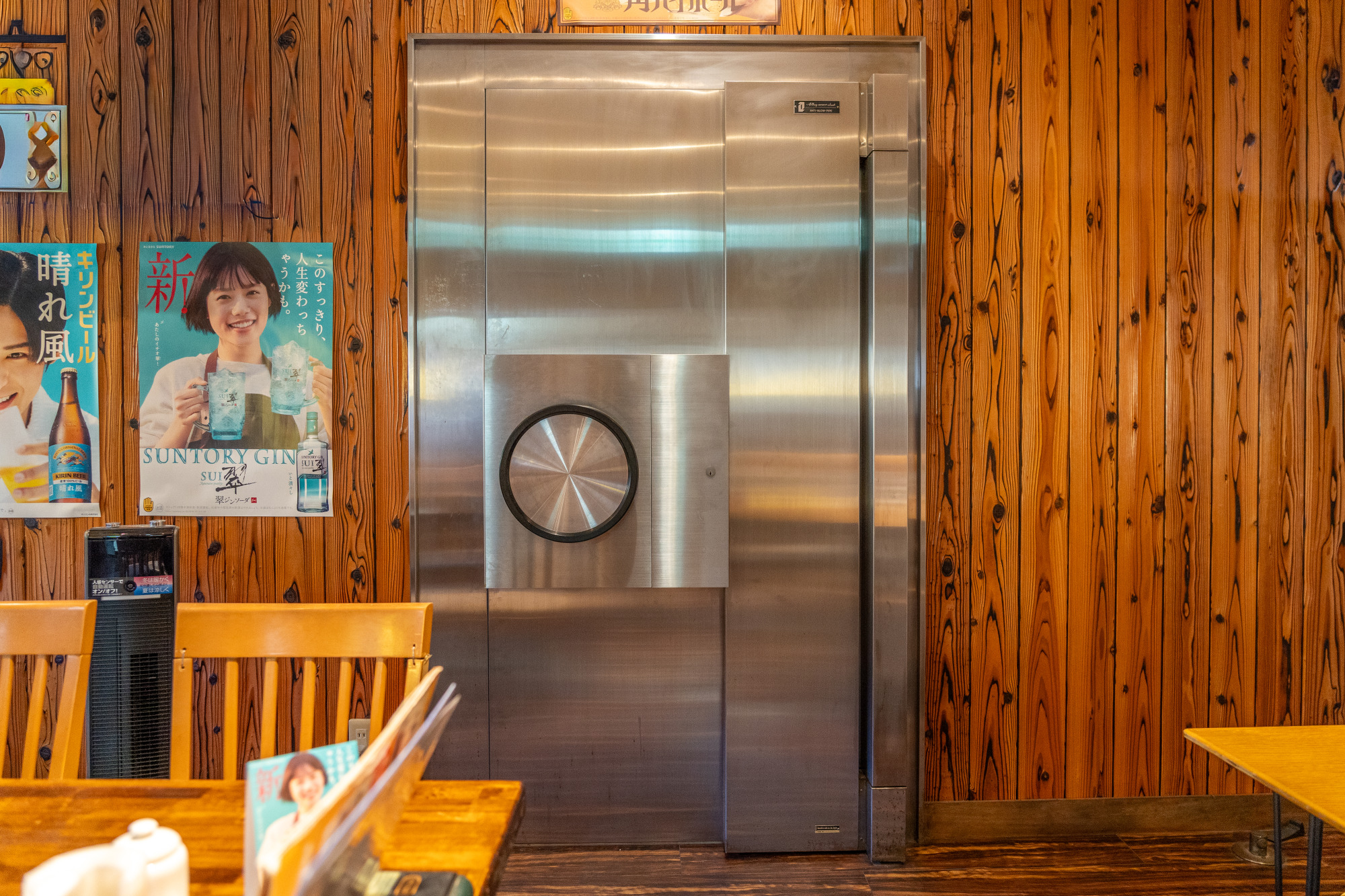 店内の壁に気になるものが…。なんとこれ、金庫の扉。元JAの銀行跡だった建物のため、重厚な金庫がそのまま残っており、中で食事も楽しめます。「ここで食べたい!」という人は予約もできます。
