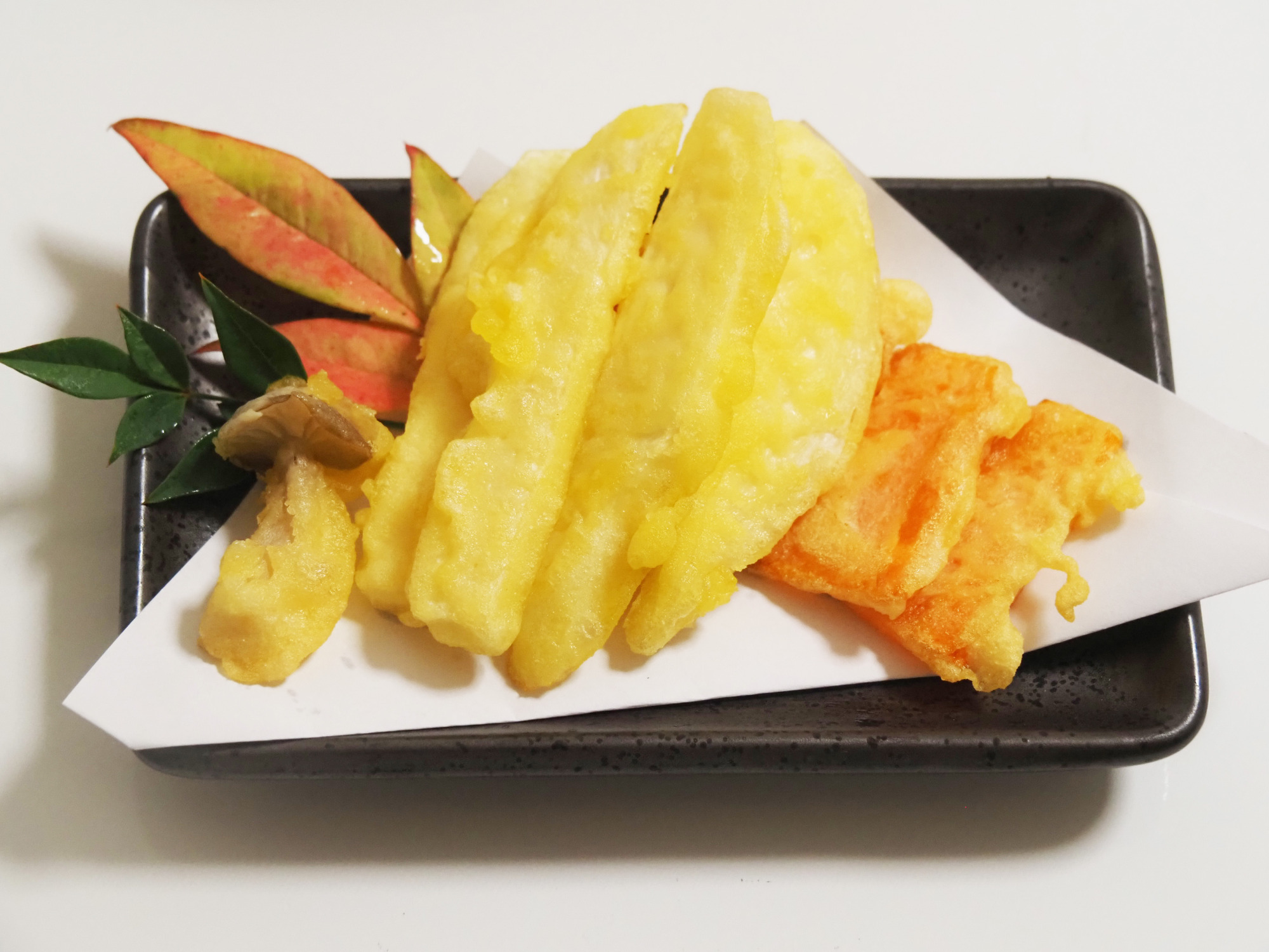 まこもたけの生産者さんにおすすめ料理を聞くと、必ずと言っていいほど挙がる定番料理が天ぷら。外はサクッ、中はほっくりとしながらもシャキッとした食感が楽しめます。シンプルに塩でいただくのがおすすめです。