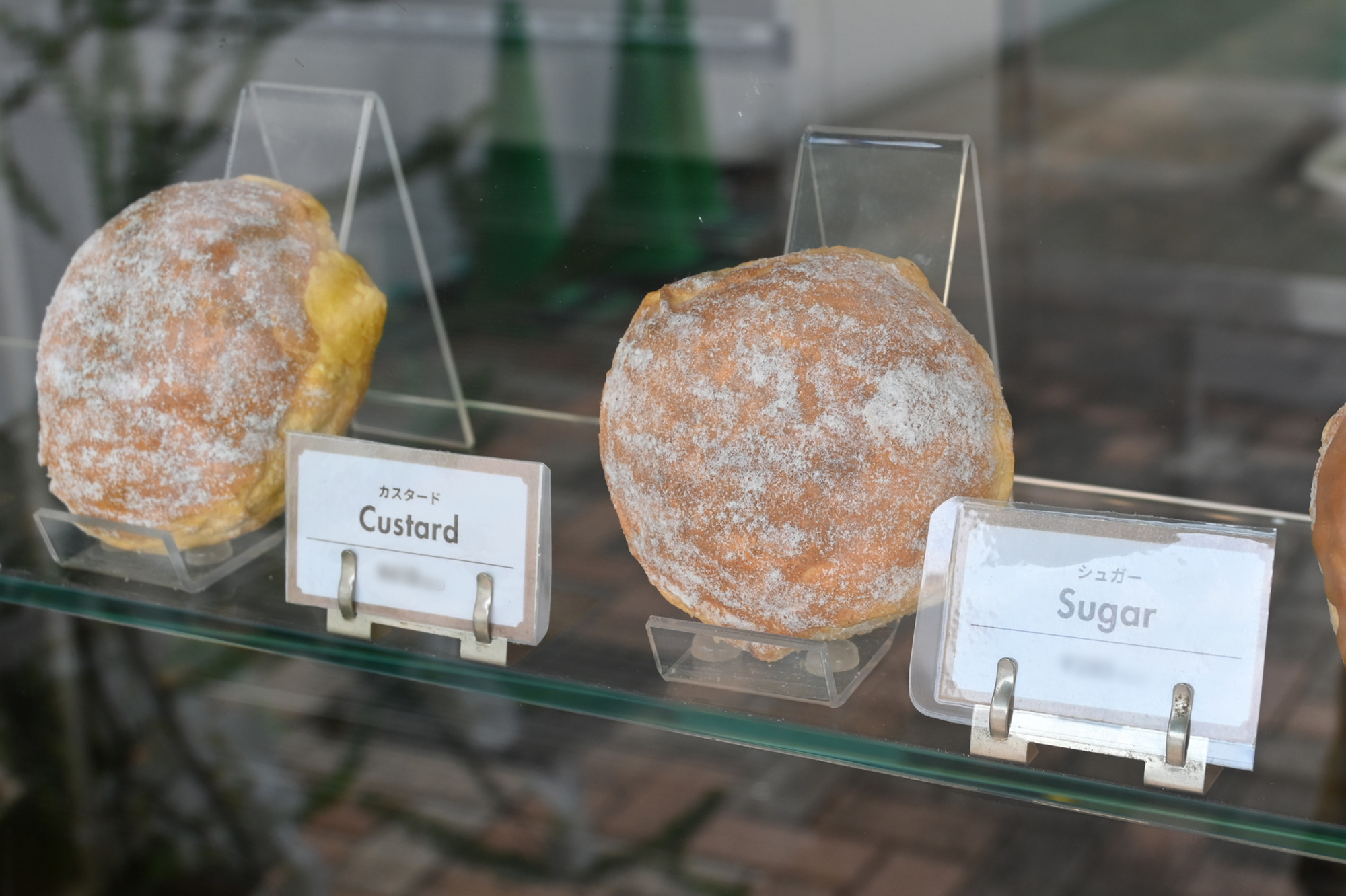 看板商品は「ブリュレドーナツ」。注文を受けてから、カスタードたっぷりのドーナツに粉糖をまぶし、目の前でバーナーで香ばしく炙るライブ感が人気です。動画を撮る人も多く、パリッと香ばしい表面としっとりした中身のコントラストは、一度食べたら忘れられない食感。