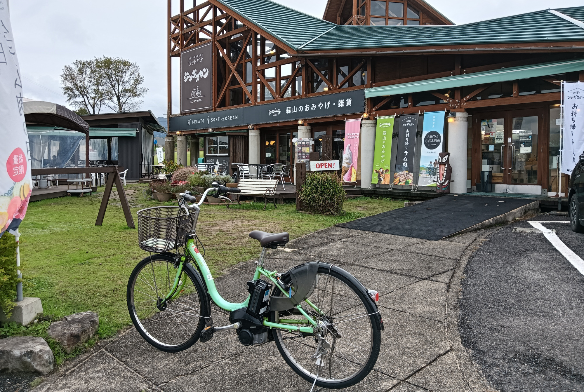 蒜山高原にはレンタサイクルスポットがたくさん!「休暇村蒜山高原」「WOOD PAO」「蒜山サイクリングサービス」「ひるぜん塩釜キャンピングヴィレッジ」など。私はどこを選べば良いか迷いに迷い、結局「GREENable HIRUZEN」の敷地にある観光案内所に聞き、おススメいただいた「WOOD PAO」さんへ。