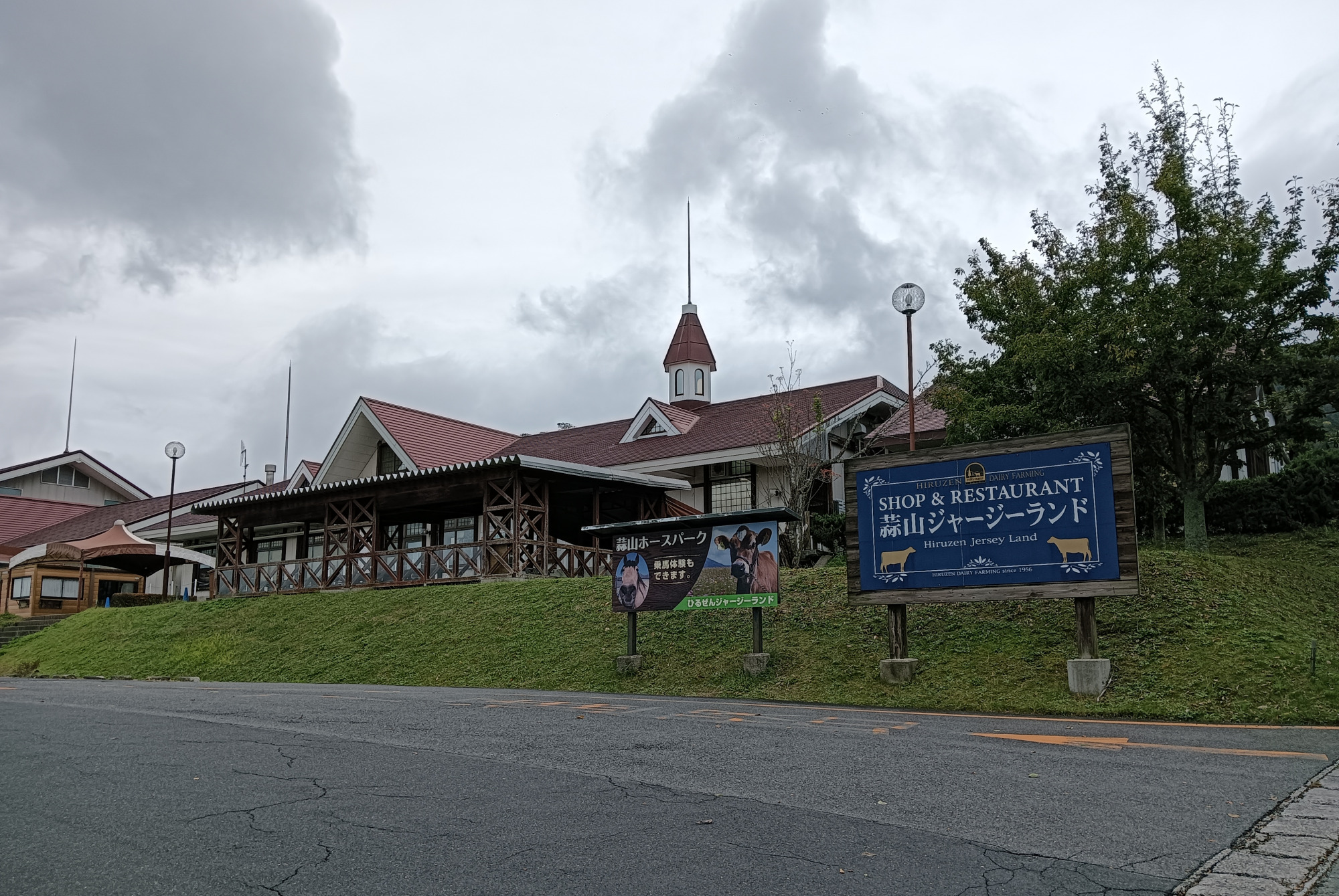 「WOOD PAO」から約4km、10分走って、まずは「ひるぜんジャージーランド」へ。蒜山高原と言えばジャージー牛。ジャージー牛と言えば牛乳。牛乳と言えばソフトクリーム。という事で、スタートしたばかりですがソフトクリームを堪能。ミルク感が凄くて程よい甘さ。とても美味しかったです。ソフトクリームは500円。館内の休憩室でも食べられるので、これからの寒い季節でも安心です。
