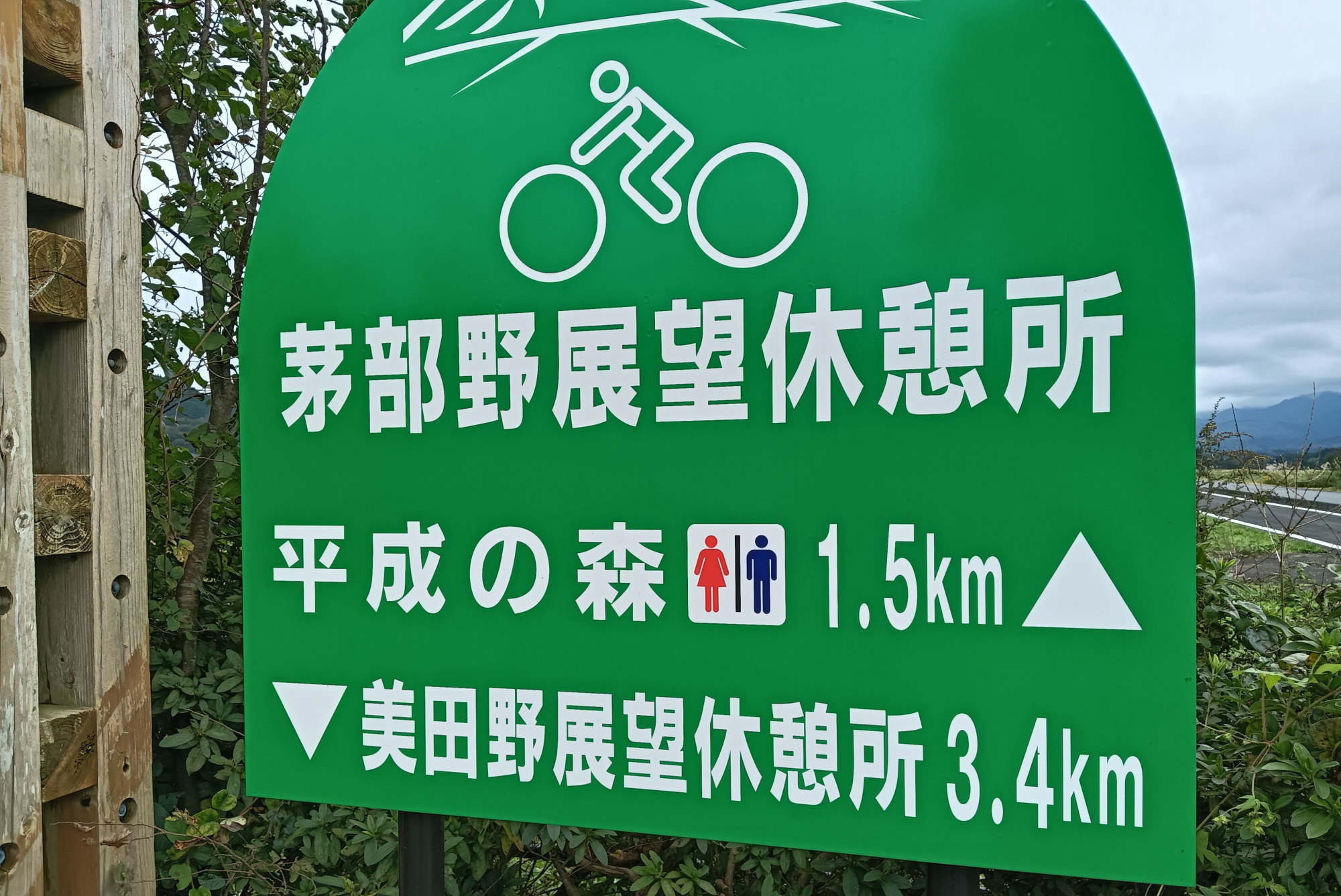 「蒜山高原自転車道ルート」は大きく分けると北側の高原コースと南側のパノラマコースに分かれます。高原コースを走破し、パノラマコースに突入。是非立ち寄ってほしいのは「茅部野展望休憩所」。