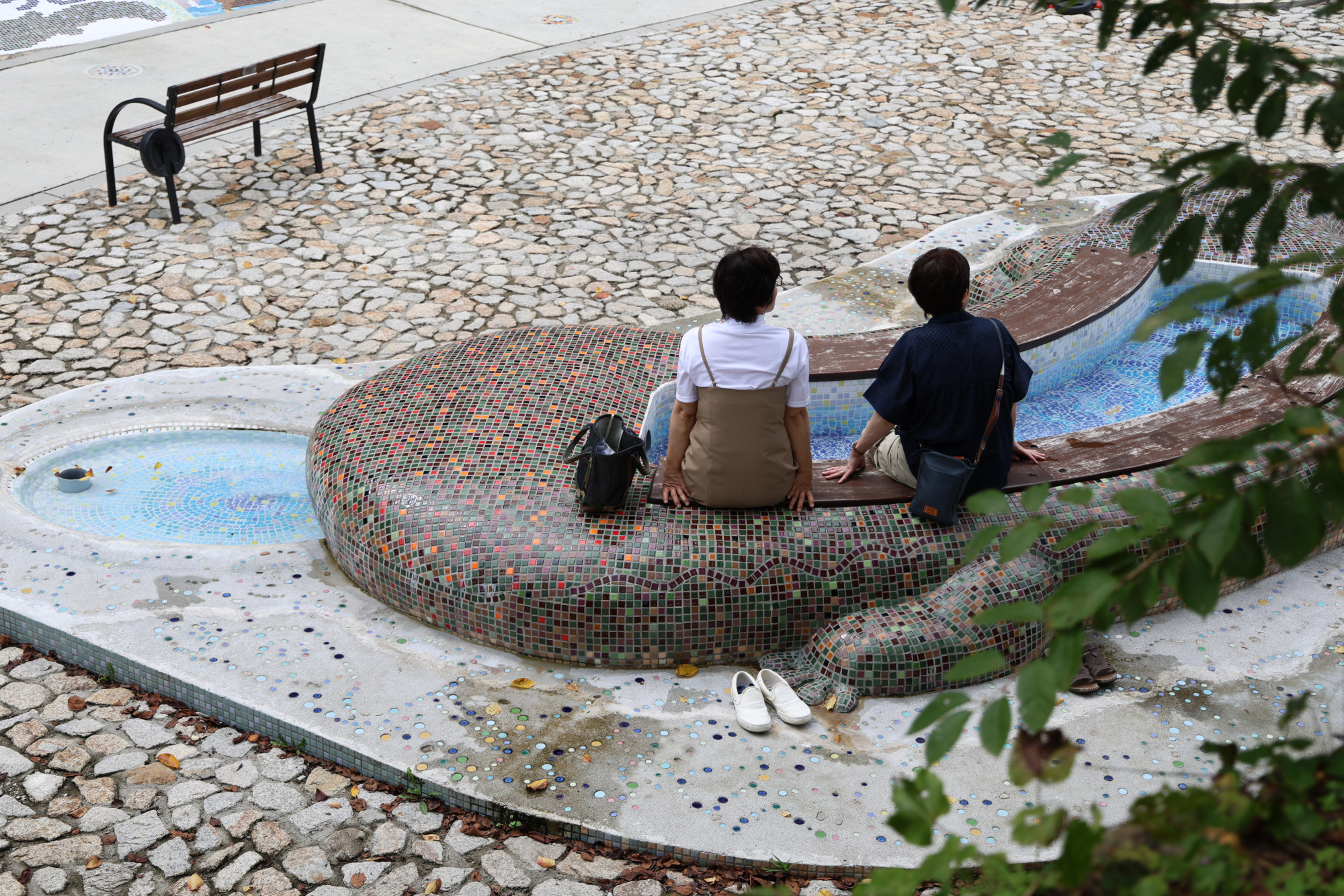 はんざき足湯は駐車場が近く何かと便利が良いので、お子様連れでも利用しやすそうです。ぬるめのお湯加減が、ここが3ヶ所目だった私にはちょうど良い感じでした。