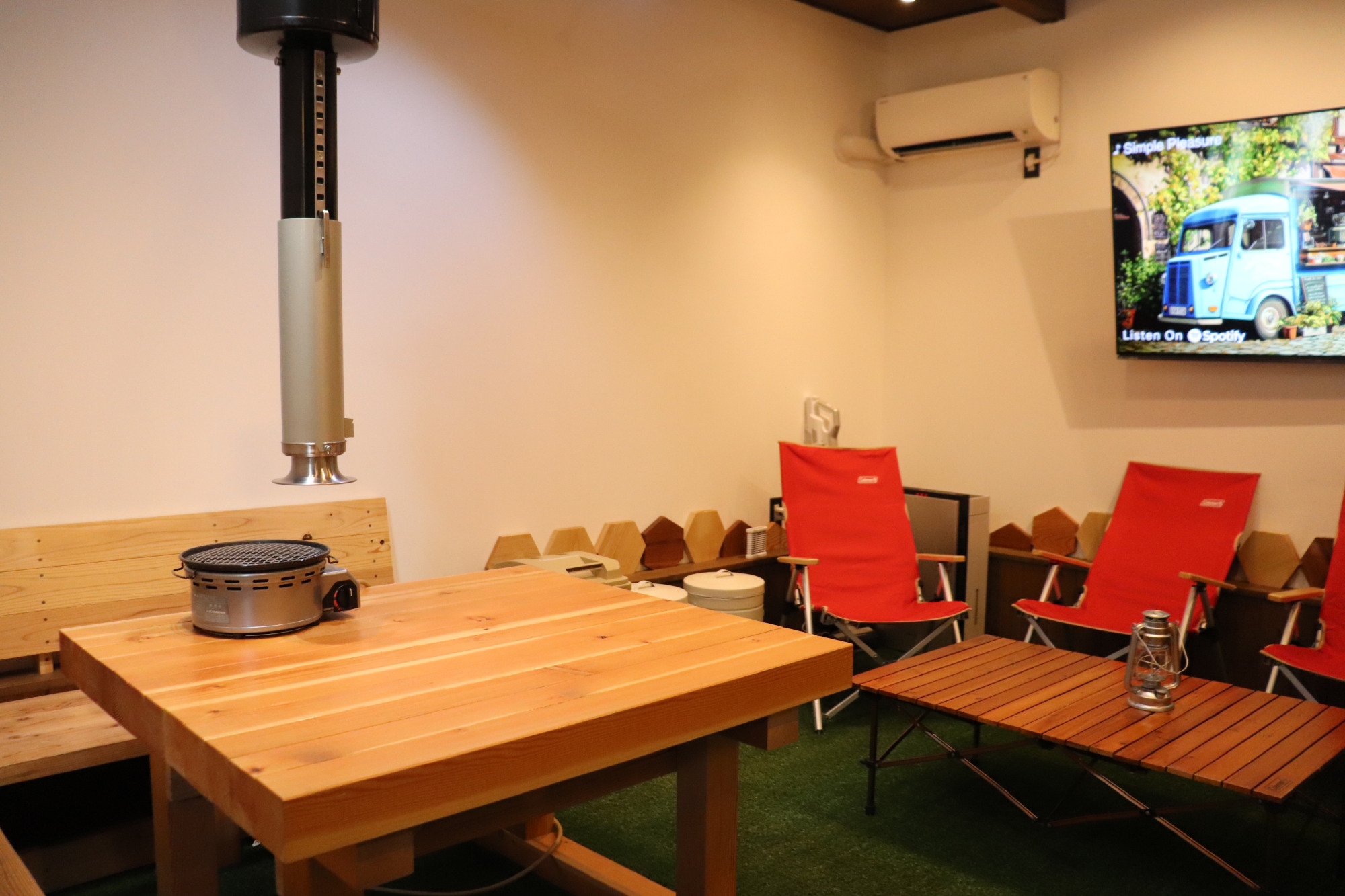 1階は室内でお天気を気にせずバーベキューができる施設になっていて、好きな食材を持ち込んで楽しめます。またお鍋をすることもできます。キッチン、オーブンレンジ、冷蔵庫、調理器具、食器類もすべてそろっているので、食材以外はほとんど手ぶらで大丈夫です。宿泊者特典として、湯原プリンも宿泊者人数分もらえます。