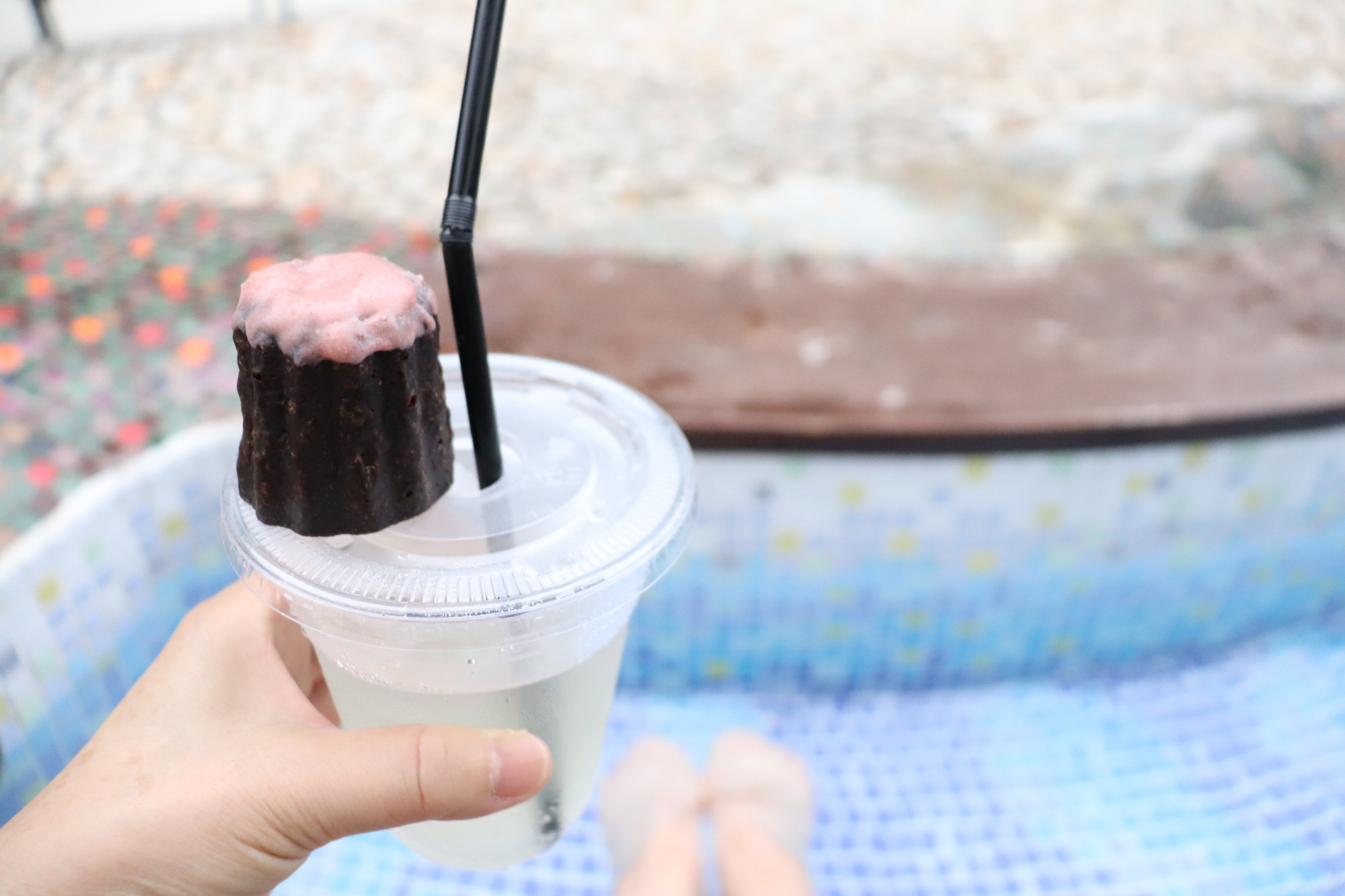 今回はカヌレとドリンクをテイクアウトして、お店のすぐ下のはんざき足湯に行き、サイコーの気分で美味しいスイーツと足湯を楽しめました。