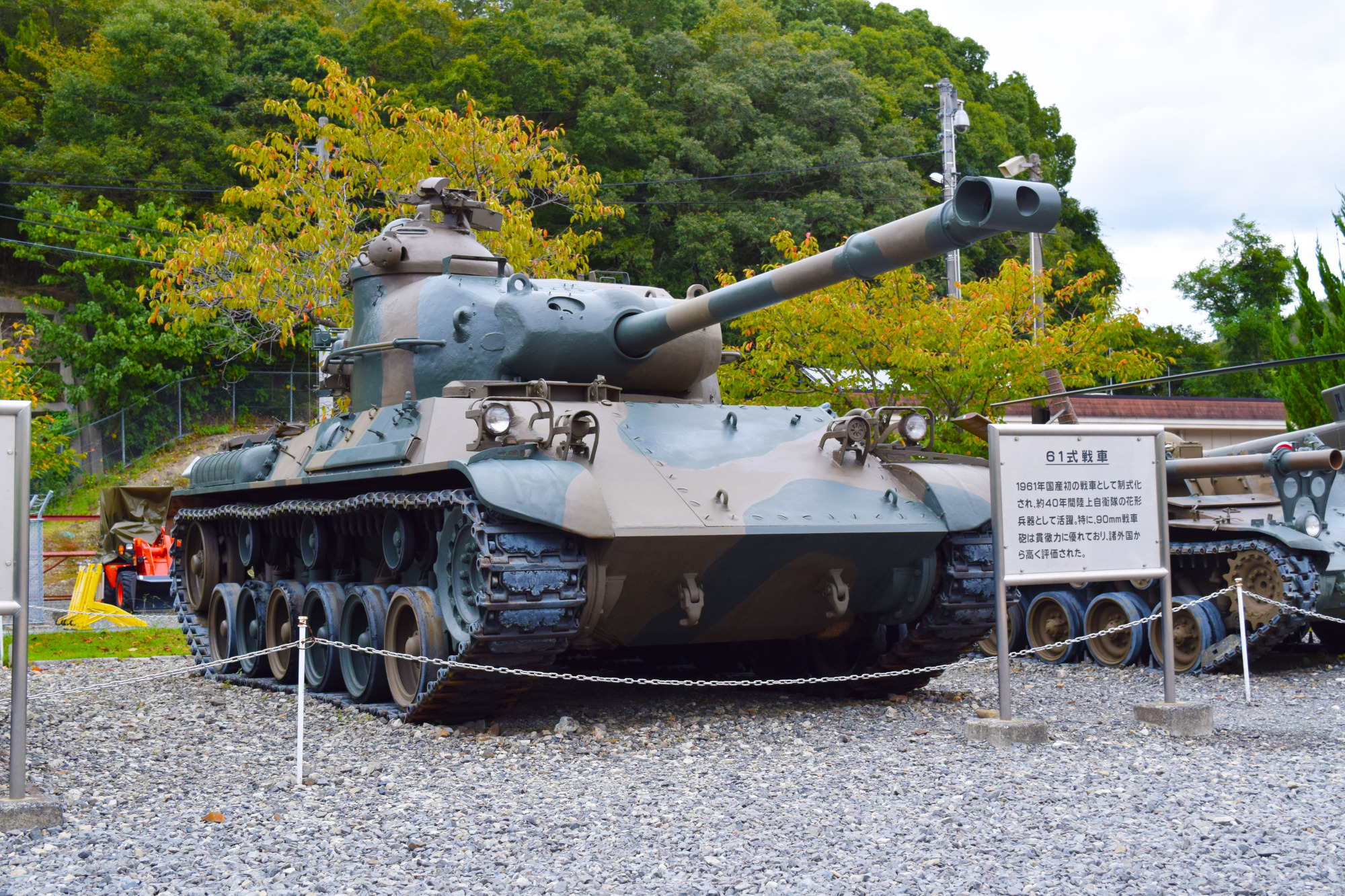 「61式戦車」は1961年に制式化された戦後初の国産戦車です。かつて複数の邦画作品にレプリカが登場しているため、このフォルムに見覚えのある方がいるかもしれません。私の場合は、1988年の角川映画『ぼくらの七日間戦争』が思い出されます。