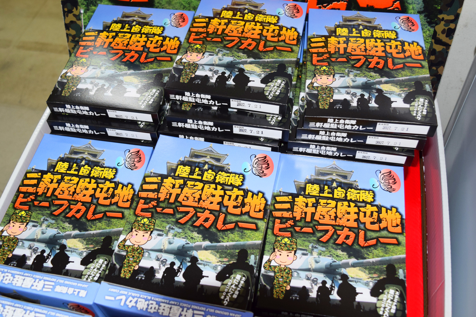 なんと「三軒屋駐屯地」のオリジナルカレーです。これは本当にこのお店でしか売っていないそうなので、見学に行ったお土産にベストですね!そのほか、こちらのお店では普通の食料品なども購入できますが、一部には一般の方は購入できない商品もあるそうです。