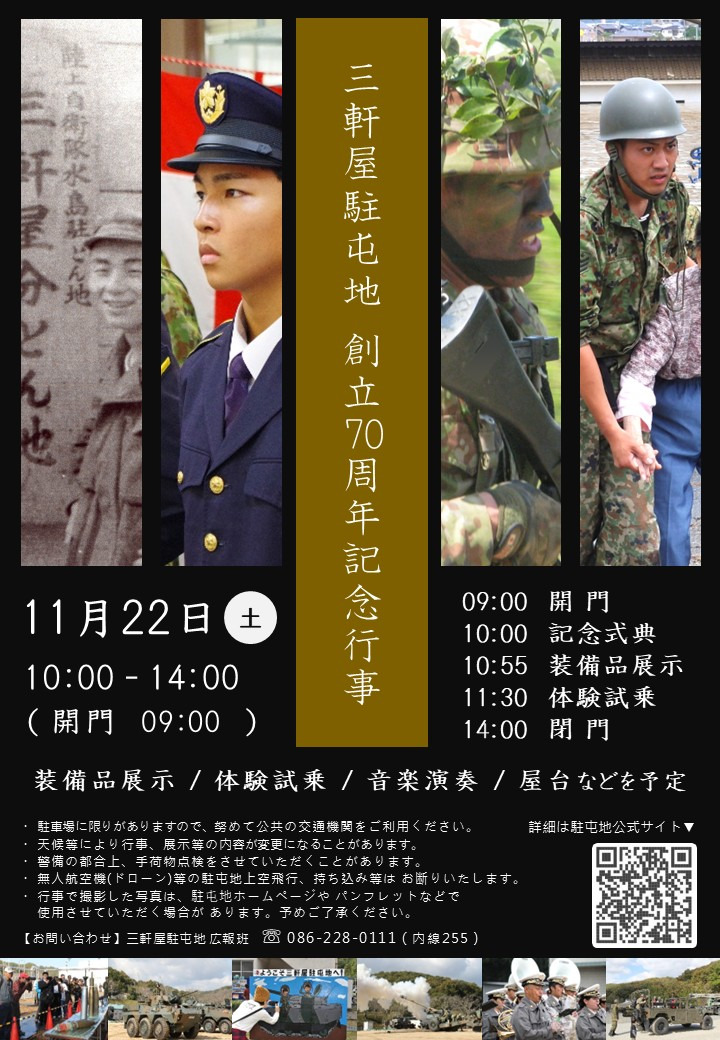 三軒屋駐屯地では創立70周年記念行事がまもなく開催されます。