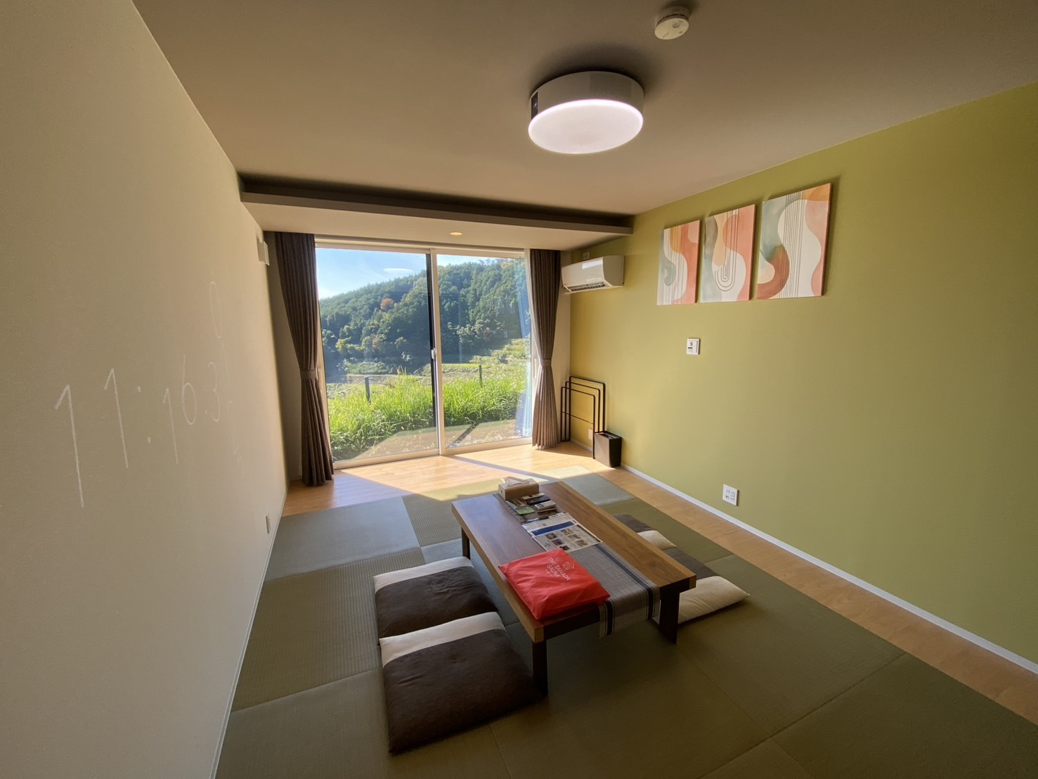 棚田を間近に感じながらテラスでヨガをしたり、備え付けのプロジェクターで映画鑑賞をしたりと、思い思いの時間を過ごせます。