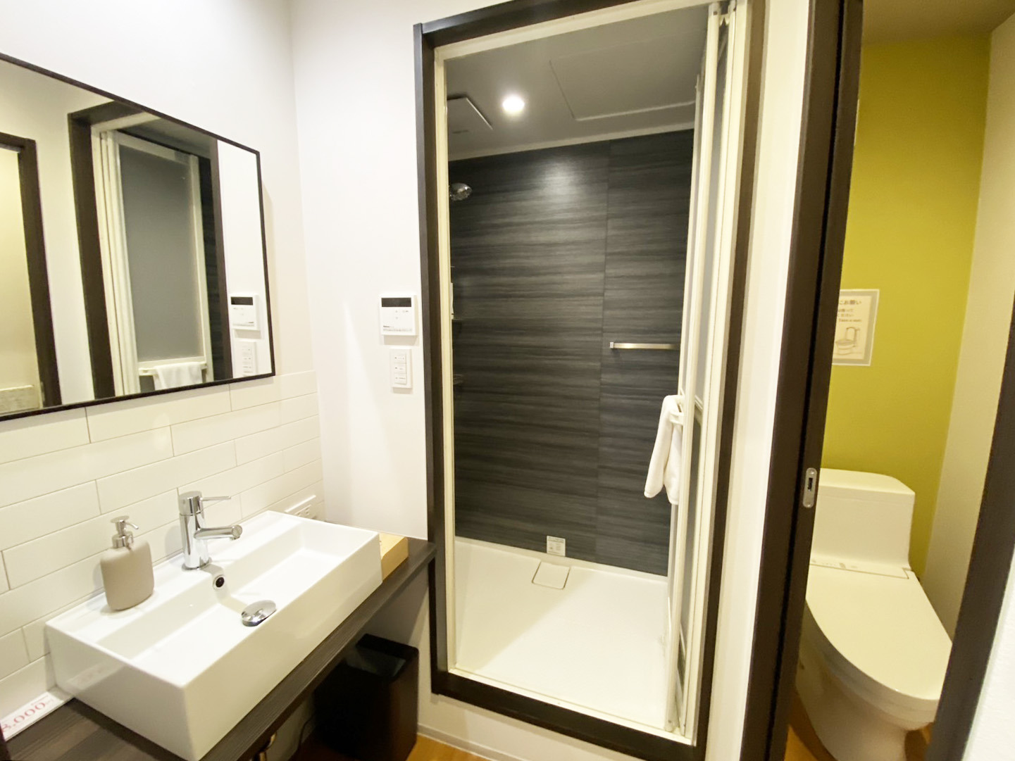 個室にシャワーとトイレ、プロジェクターも完備。サウナ後に気兼ねなくのんびりと過ごせます。