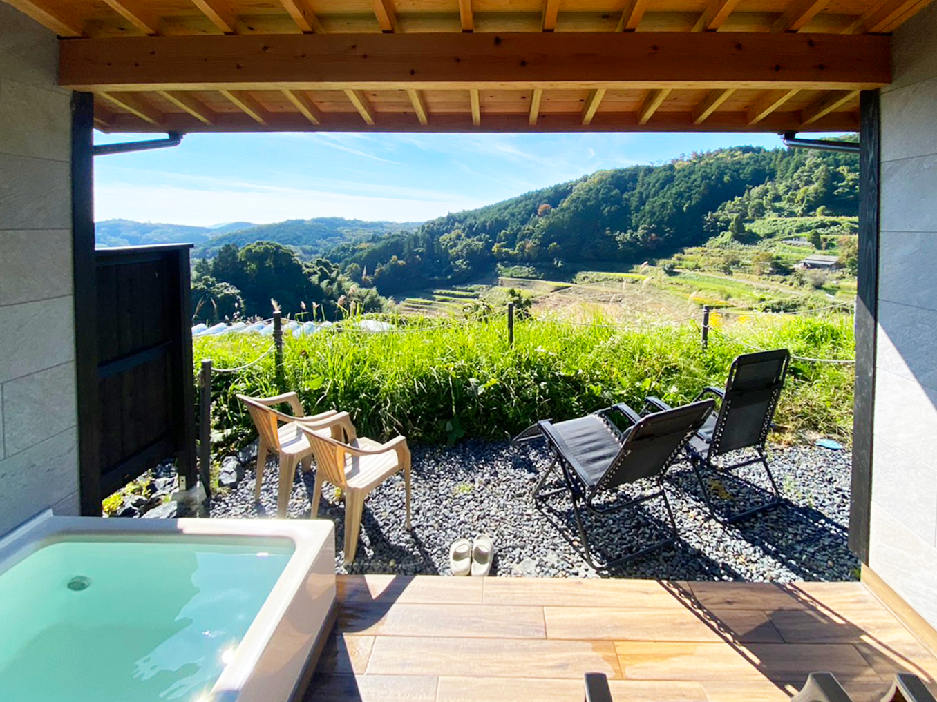 さらにVILLAには、棚田の絶景を独り占めできる露天風呂や自炊ができるキッチンも。