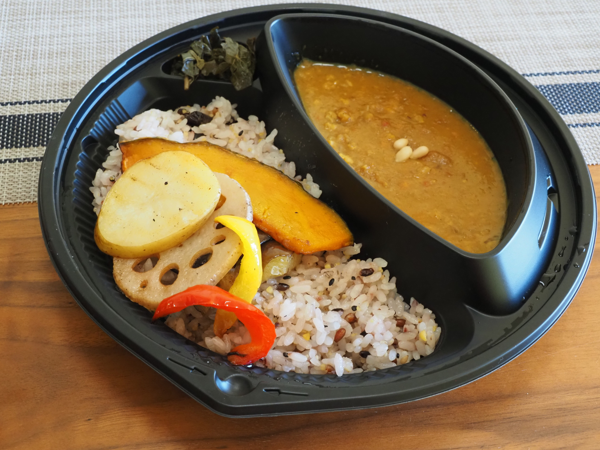 デイユースの方のみ、テイクアウトで「薬膳カレー」をいただくこともできます。目の前の棚田でとれたお米を使用。甘口ながらもスパイスがしっかり効いていて、奥深い味わいが口の中に広がります。