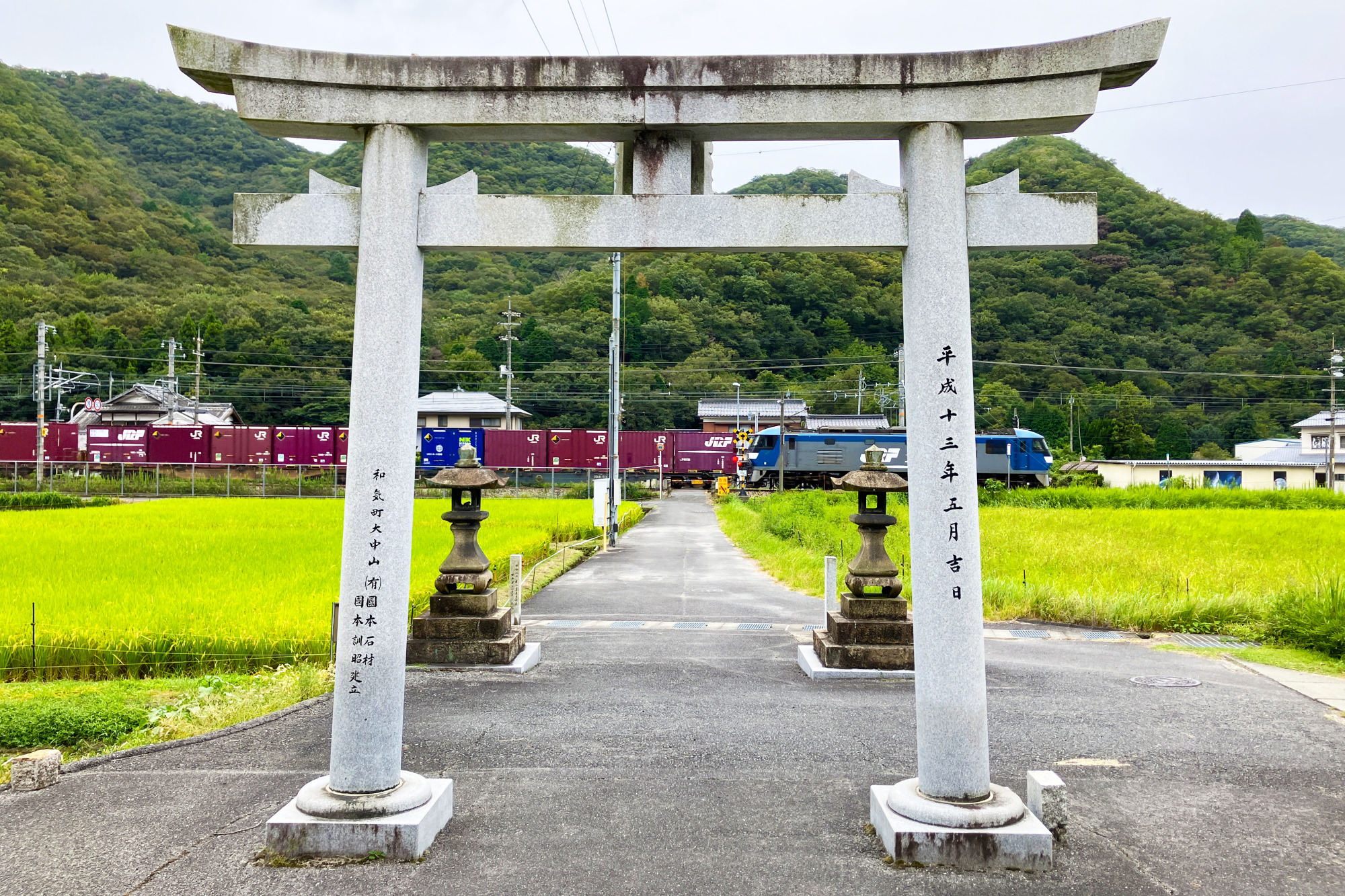 例年、1月5日の大祭には多くの参拝者が訪れますが、普段はとても静かで落ち着いた場所です。ときおり山陽本線が参道の前を通過して、周囲に響き渡る警報機の音が何とも言えない郷愁を誘います。