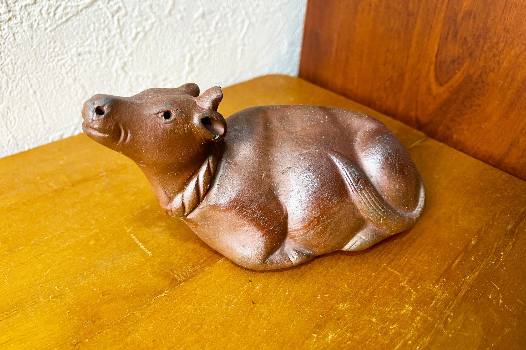 こちらが家に持ち帰った備前焼の牛さんです。とてもかわいらしいですね。願いが成就して再び「田倉牛神社」を訪れる日が楽しみです。