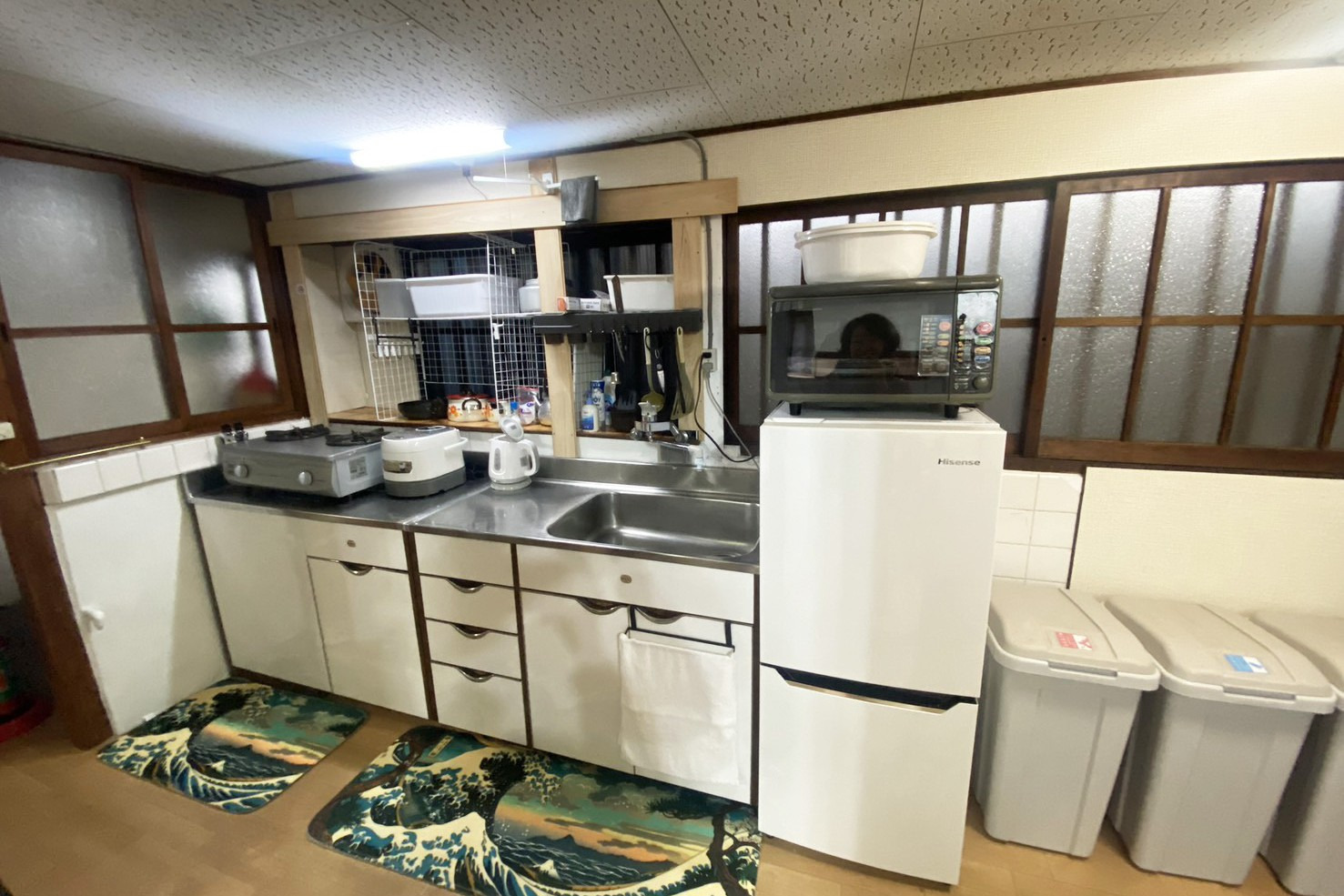 広々としたキッチンダイニングには調理家電がひと通り揃っており、好きな食材を持ち寄り、食卓をみんなで囲むのも楽しみ方のひとつ。